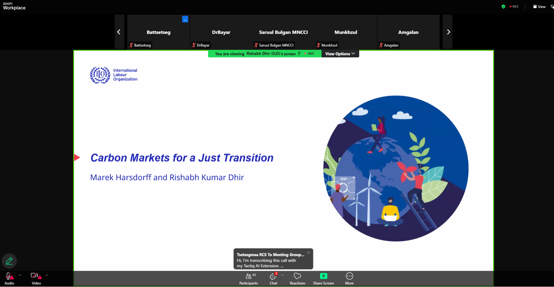 Олон Улсын Хөдөлмөрийн Байгууллага-аас ILO PAGE төслийн хүрээнд МҮХАҮТ-ын ажилчид, бизнес эрхлэгчдийн төлөөллүүдэд зориулан “Нүүрстөрөгчийн зах зээл ба Шударга шилжилтэд үзүүлэх нөлөөлөл” сэдвээр сургалт зохион байгууллаа.