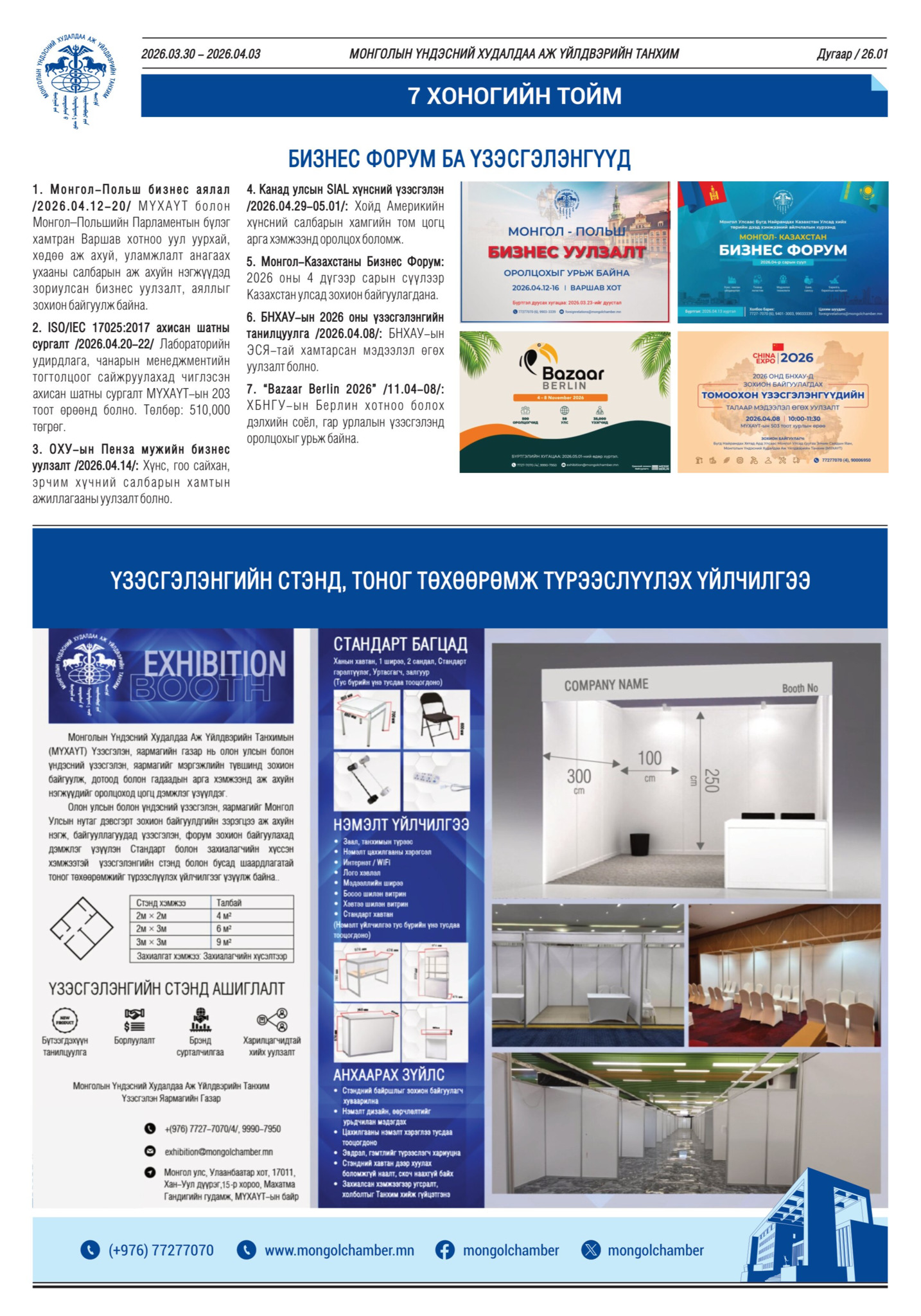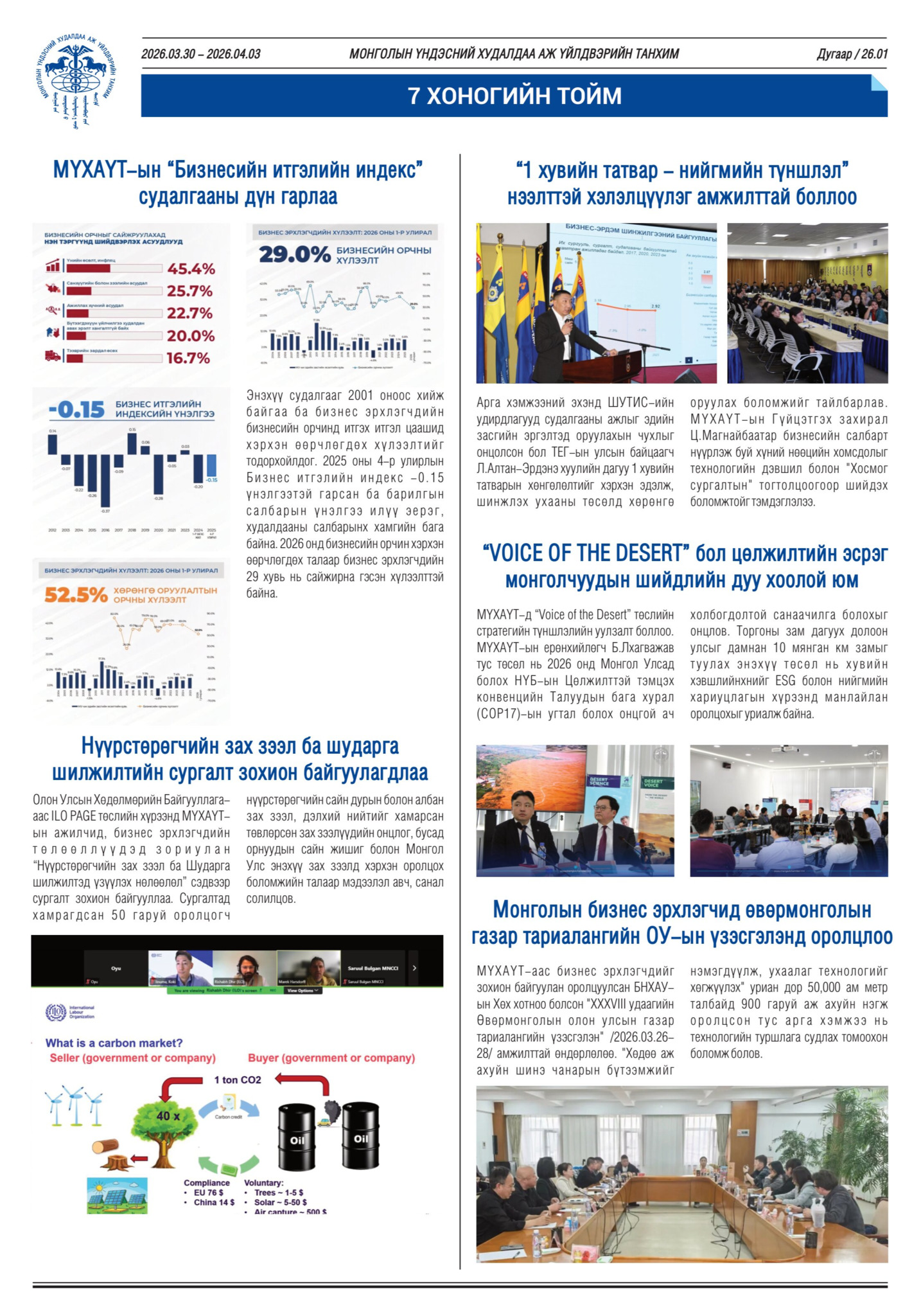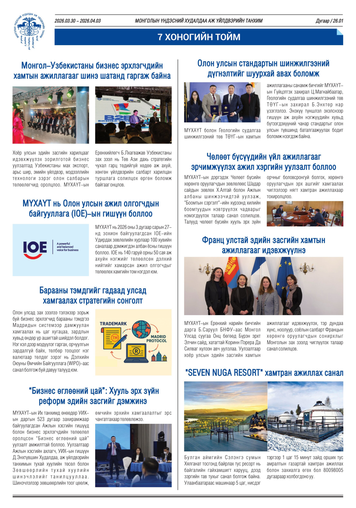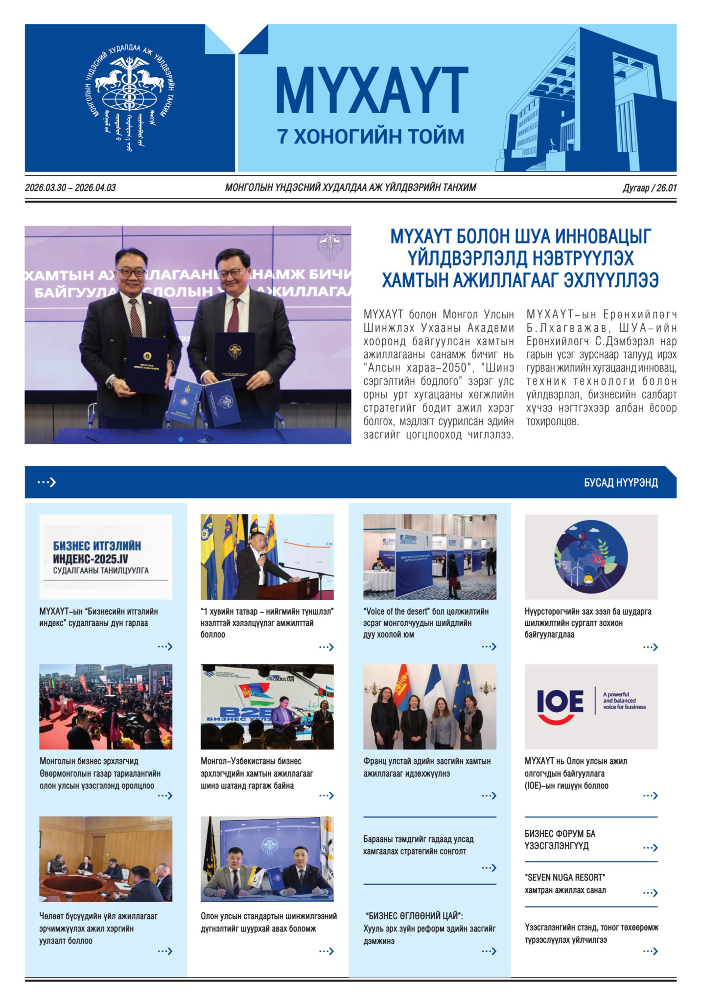 Бизнес эрхлэгч та бүхэнд өнгөрсөн долоо хоногийн (2026.03.30-04.03) онцлох үйл явдлуудыг тоймлон хүргэж байна.