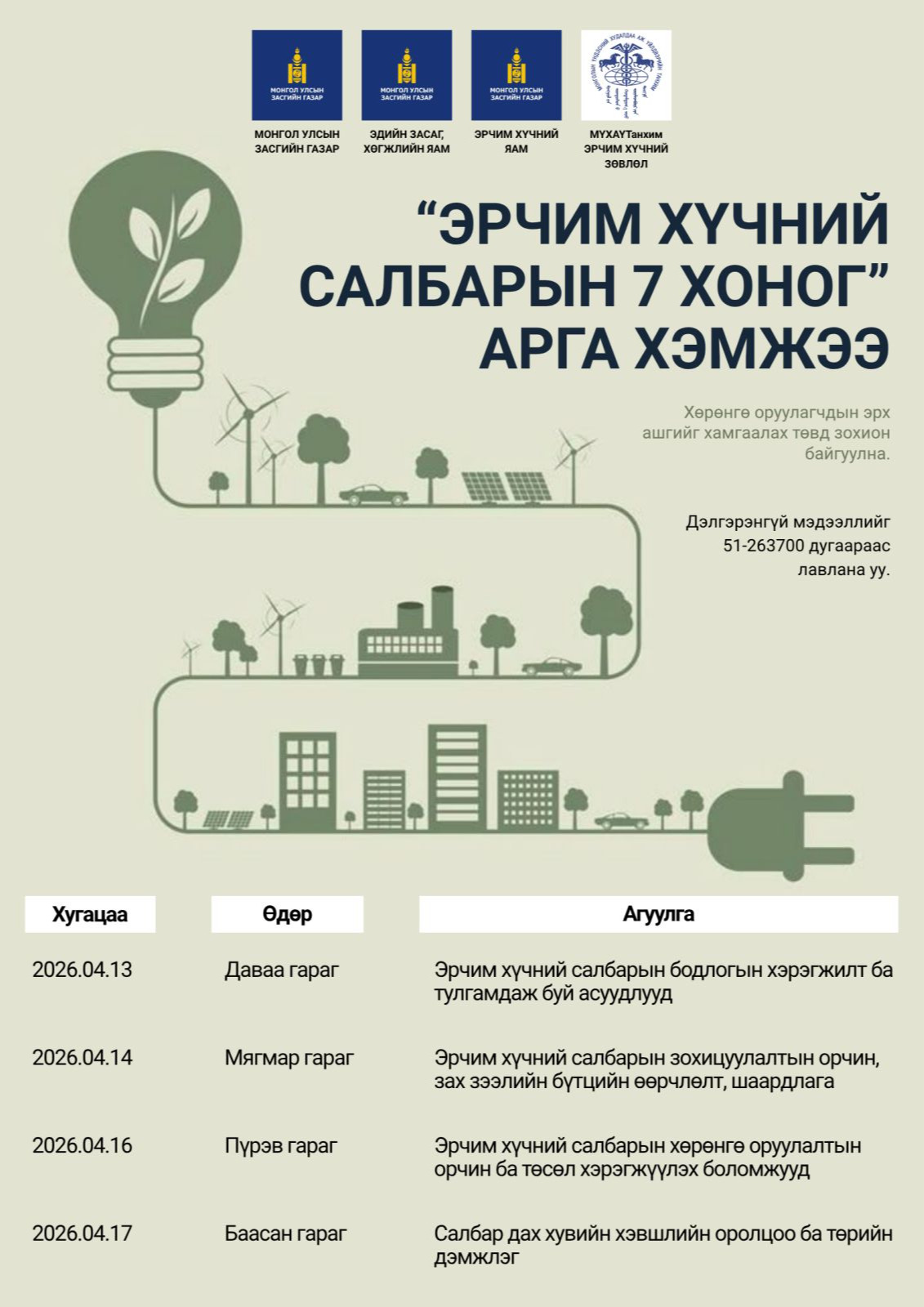 Эдийн засаг, хөгжлийн яамны "Хөрөнгө оруулагчийн эрх ашгийг хамгаалах төв"-д зохион байгуулагдах "Эрчим хүчний салбарын 7 хоног" арга хэмжээнд хүрэлцэн ирэхийг урьж байна.