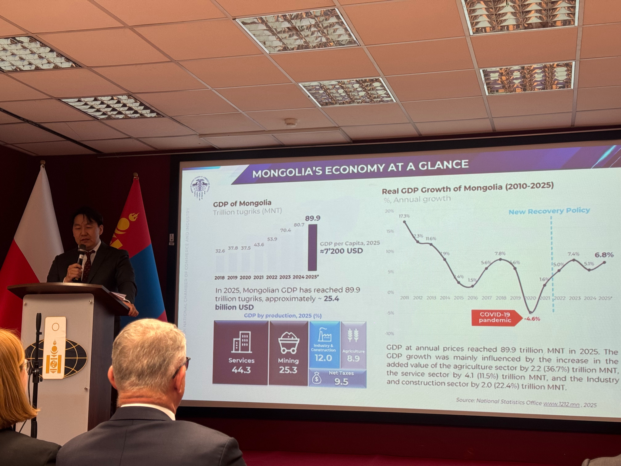 Уулзалтад Монголын Үндэсний Худалдаа Аж Үйлдвэрийн Танхимын Ерөнхийлөгч Б.Лхагважав уул уурхай, эм зүй, хөдөө аж ахуйн салбарын 30 орчим төлөөлөгчөөс бүрдсэн бизнесийн багийг ахлан оролцож, Польшийн талтай түншлэлийн шинэ боломжуудыг эрэлхийллээ. Арга хэмжээний үеэр МҮХАҮТ-ын Ерөнхийлөгчийн зөвлөх М.Сарандаваа Монгол Улсын эдийн засгийн өнөөгийн байдал болон гадаад худалдааны бодлогын талаар танилцуулга хийсэн бол Польшийн Хөрөнгө оруулалт, худалдааны агентлаг (PAIH) болон KUKE байгууллагууд өөрийн орны хөрөнгө оруулалтын орчны давуу талуудыг танилцуулсан юм.