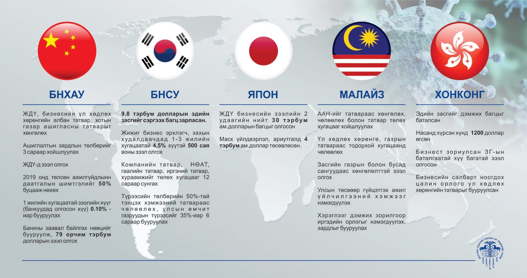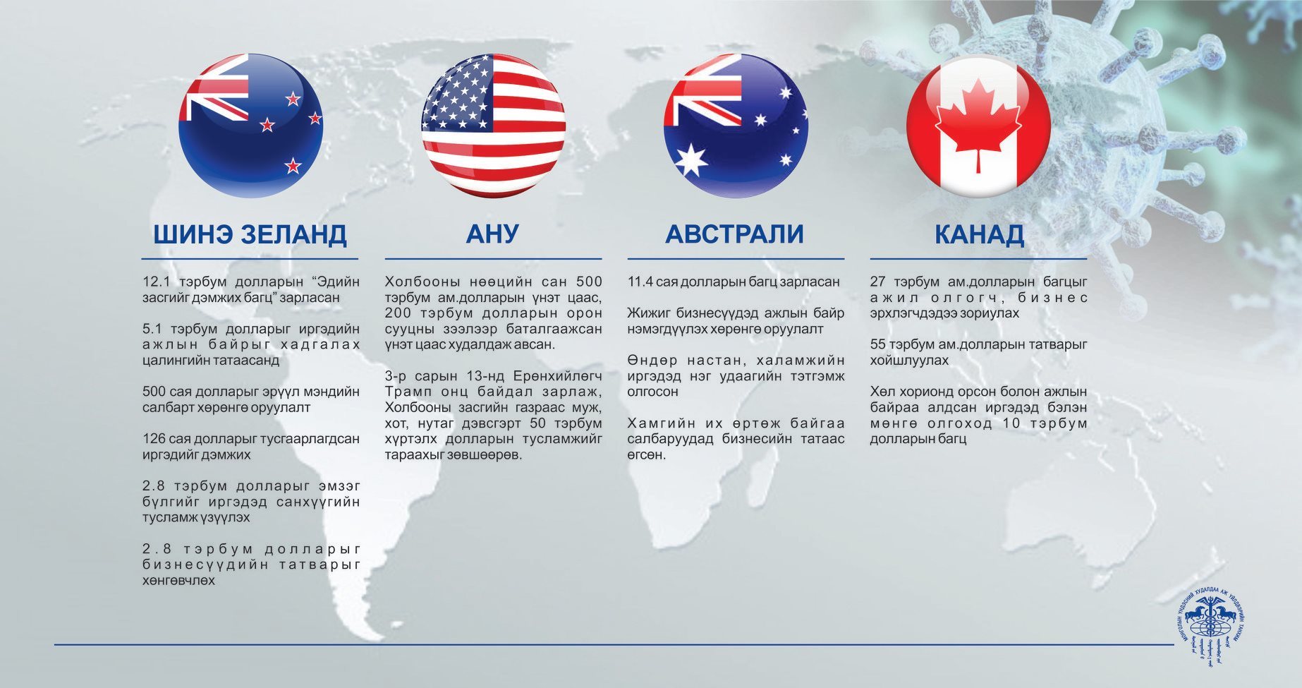 COVID-19 нөхцөл байдлын үед улс орнууд эдийн засагтаа ямар арга хэмжээ авч байна вэ?