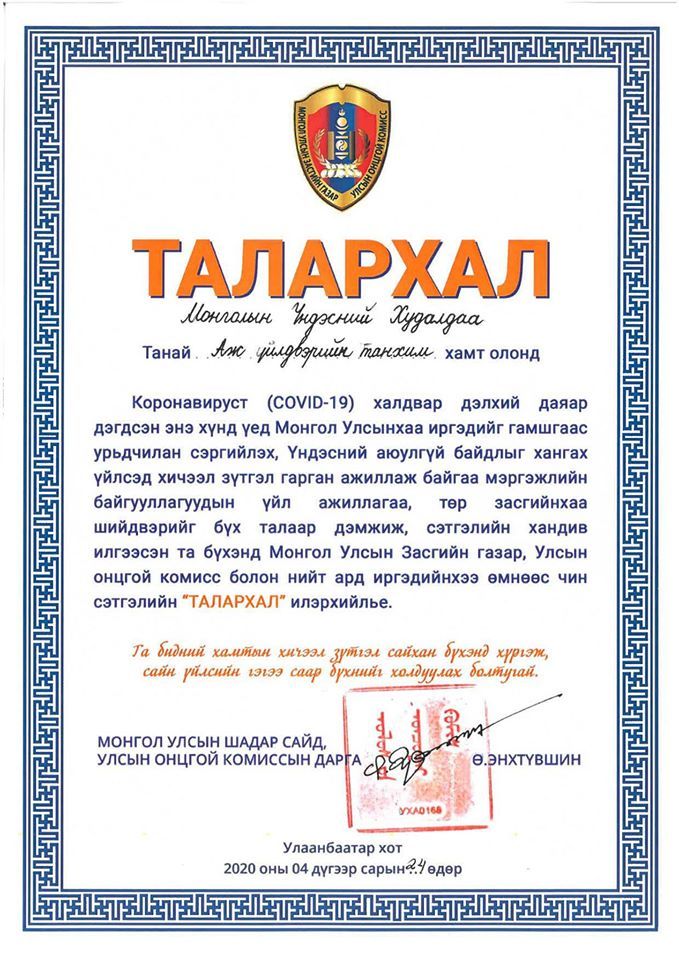 Санамж бичгийн хүрээнд Гамшгаас хамгаалах тухай хууль, гамшгийн эрсдэлийг олон нийтийн оролцоотой бууруулах үндэсний хөтөлбөрийг хэрэгжүүлэх хүрээнд харилцан дэмжлэг үзүүлж, учрахаас урьдчилан сэргийлэх, аюулгүй байдлыг хангах, сургалт, сурталчилгаа зохион байгуулах зэргээр хамтран ажиллах юм. Мөн энэ үеэр Онцгой байдлын албан хаагчидад МҮХАҮТ-аас 5000 ширхэг амны хаалт ханидивлалаа.