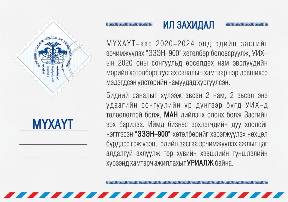 МҮХАҮТ-аас 2020-2024 онд эдийн засгийг эрчимжүүлэх "ЭЗЭН-900" хөтөлбөр боловсруулж, УИХ-ын 2020 оны сонгуульд өрсөлдөх нам эвслүүдийн мөрийн хөтөлбөрт тусгах саналын хамтаар нэр дэвшихээ мэдэгдсэн улстөрийн намуудад хүргүүлсэн.