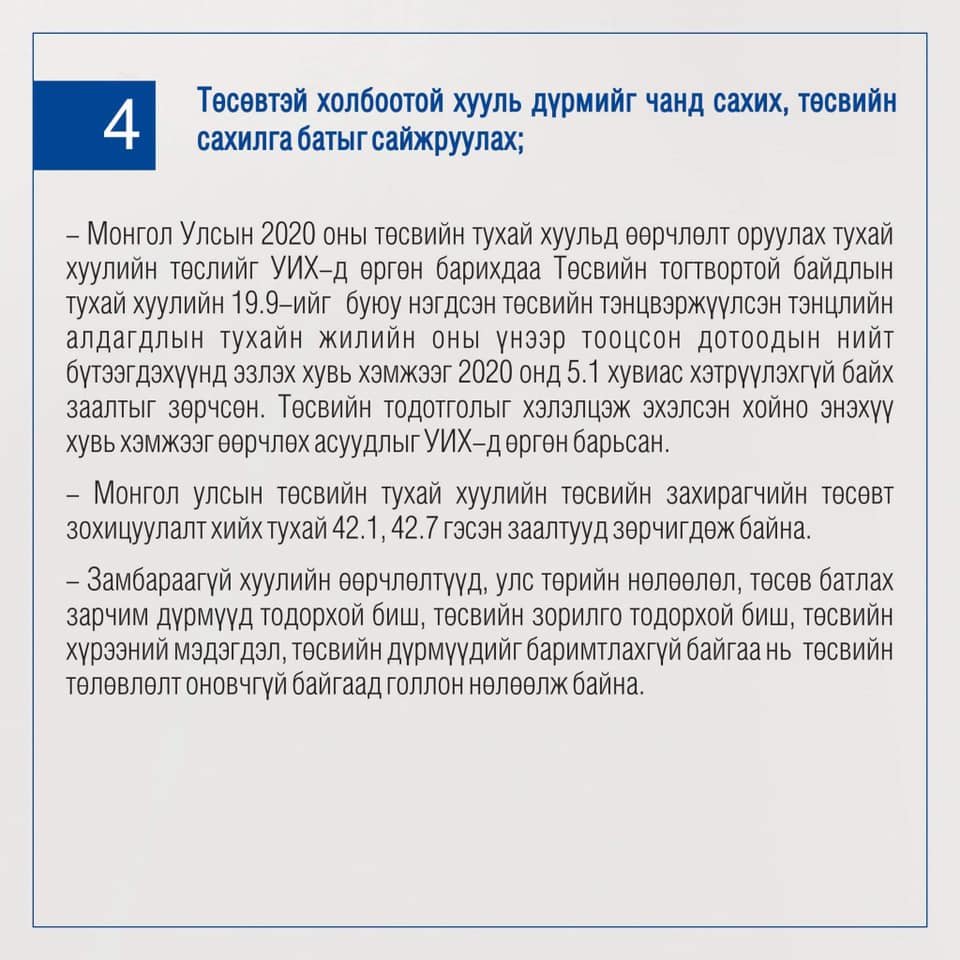 МҮХАҮТ-аас Монгол Улсын Ерөнхийлөгчид төсвийн тодотголын талаар санал хүргүүллээ