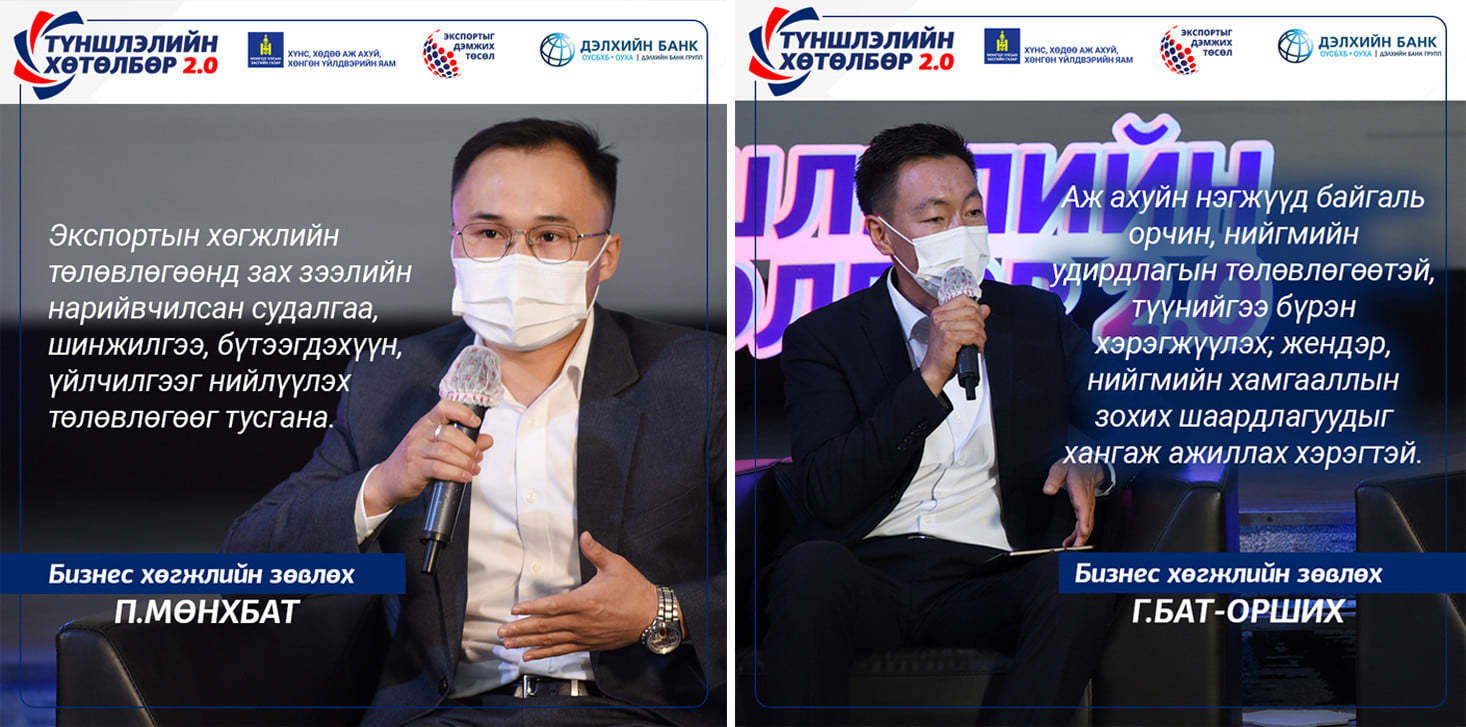 Монгол Улсын уул уурхайн бус салбарын жижиг дунд аж ахуйн нэгж, кластеруудын экспортын чадавхийг сайжруулах, экспортын зах зээлээ тэлэхэд нь дэмжлэг үзүүлэх зорилго бүхий "Түншлэлийн хөтөлбөр 2.0" танилцуулах | ЦАХИМ УУЛЗАЛТ арга хэмжээ онлайнаар зохион байгуулагдлаа.