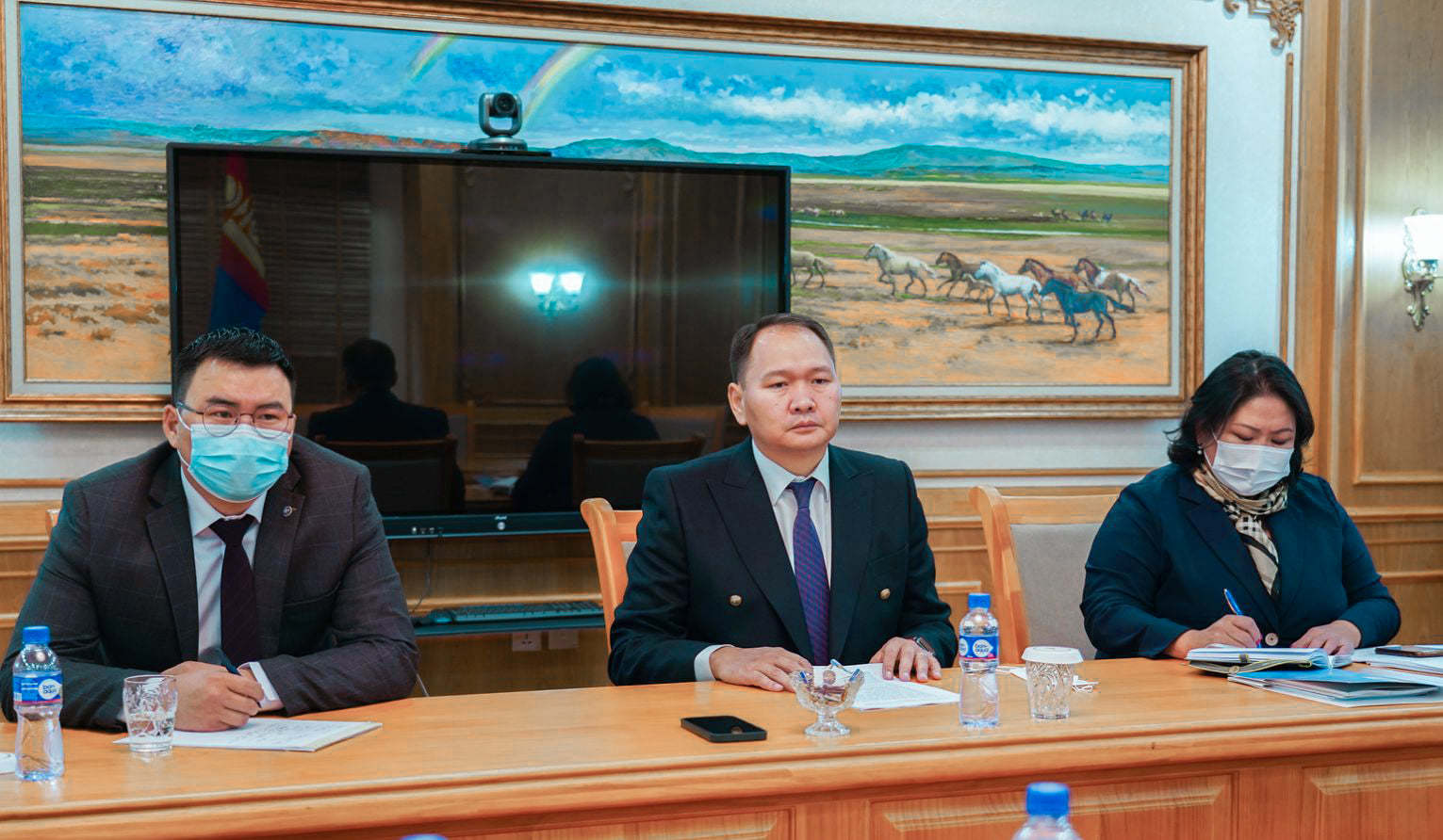 Уулзалтад ХЗДХЯ-ны Хууль зүйн бодлогын газрын дарга П.Сайнзориг, МҮХАҮТ-ын дэргэдэх МОУА-ын Ажлын албаны дарга М.Шинэбаяр, МҮХАҮТ-ын БСГ-ын дарга Ж.Оюунчимэг нар оролцов.