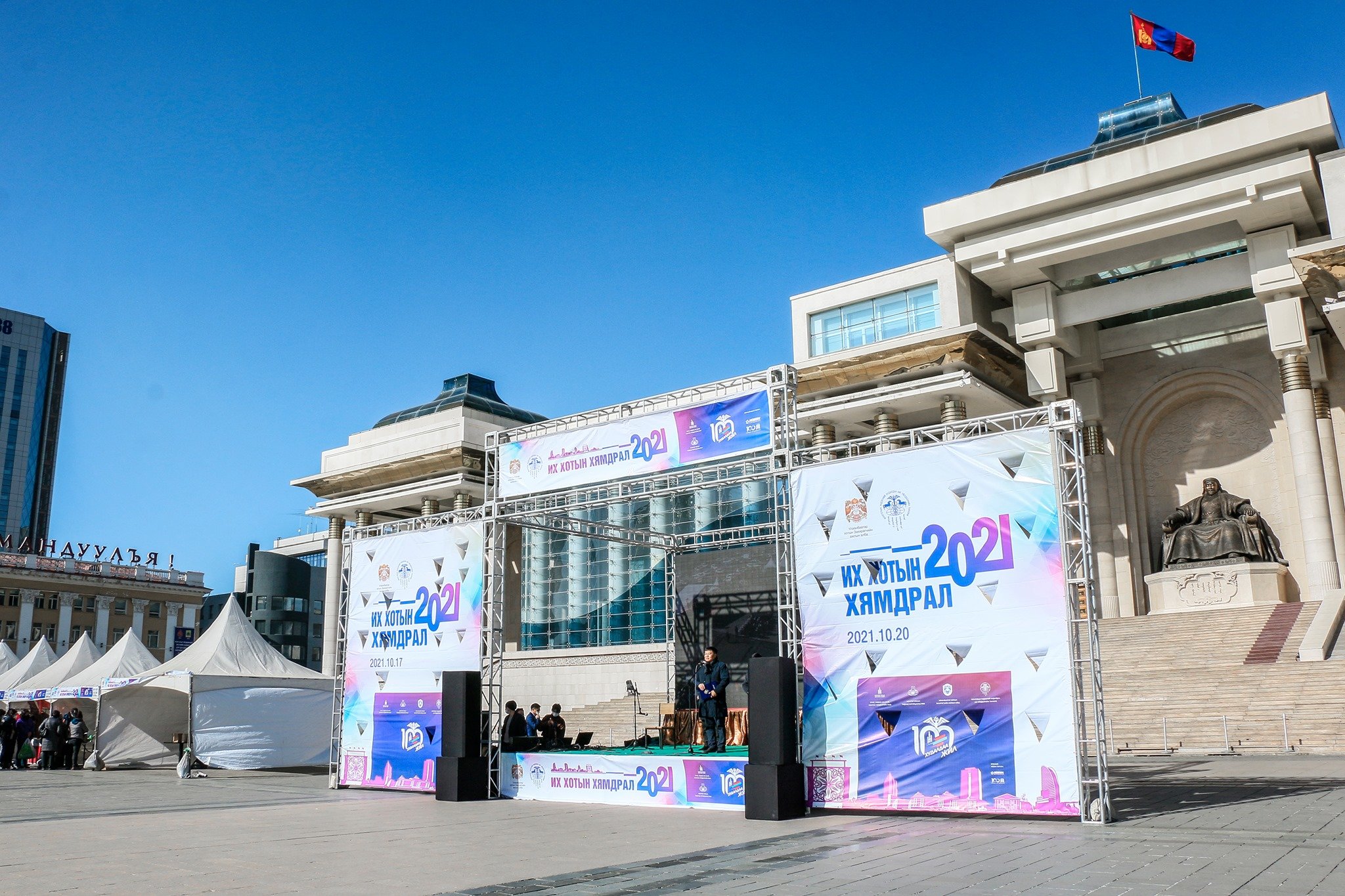Монгол Улсад худалдааны салбар үүсэж хөгжсөний 100 жил, Нийслэлийн 382 жилийн ойн арга хэмжээний хүрээнд Монголын Үндэсний Худалдаа, Аж Үйлдвэрийн Танхим, Улаанбаатар хотын Захирагчийн ажлын алба хамтран зохион байгуулж буй “ИХ ХОТЫН ХЯМДРАЛ - 2021” арга хэмжээ Д.Сүхбаатарын талбайд эхэллээ. Арга хэмжээний нээлт өнөөдөр болж, Улаанбаатар хотын Ерөнхий менежер бөгөөд Улаанбаатар хотын Захирагчийн ажлын албаны дарга Т.Гантөмөр, МҮХАҮТ-ын дарга Т.Дүүрэн болон бусад хүмүүс оролцлоо.