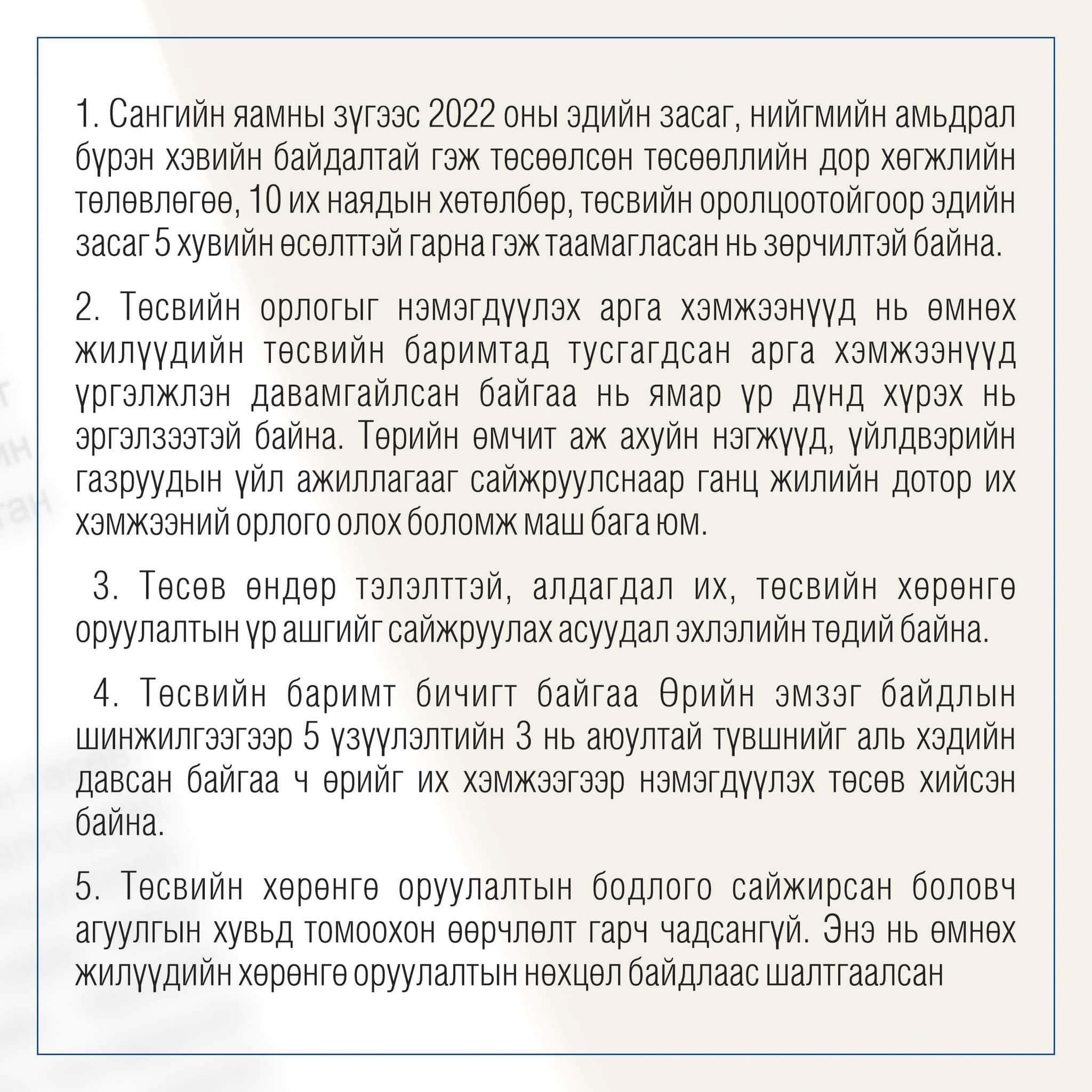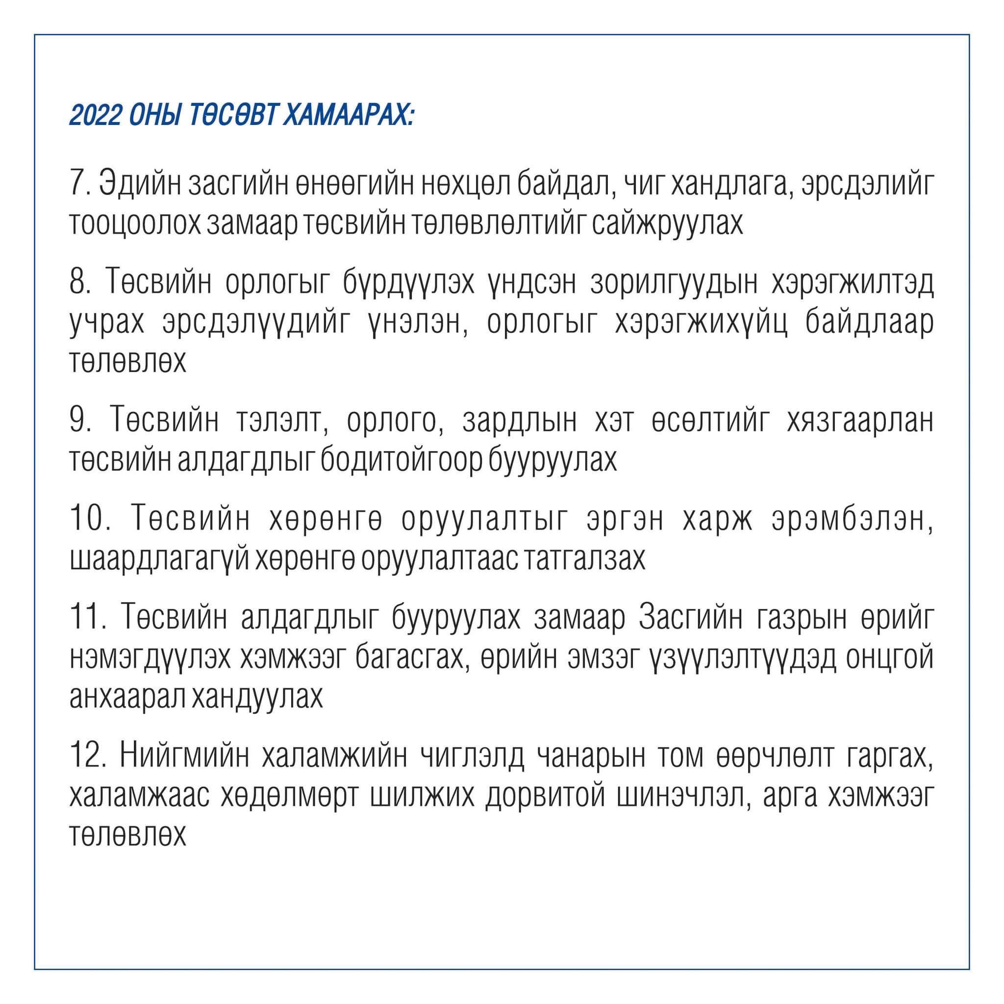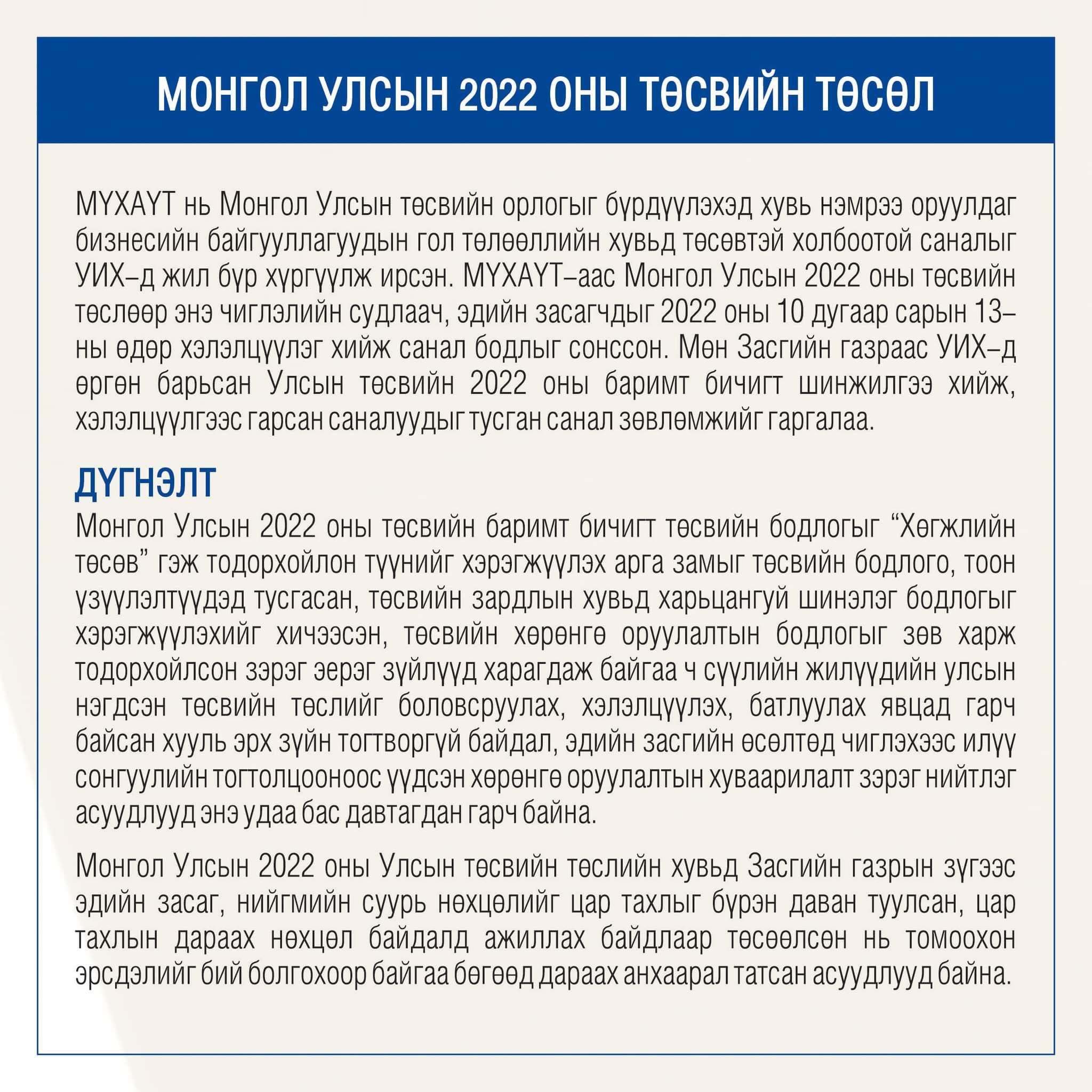 МОНГОЛ УЛСЫН 2022 ОНЫ ТӨСВИЙН ТӨСӨЛ
