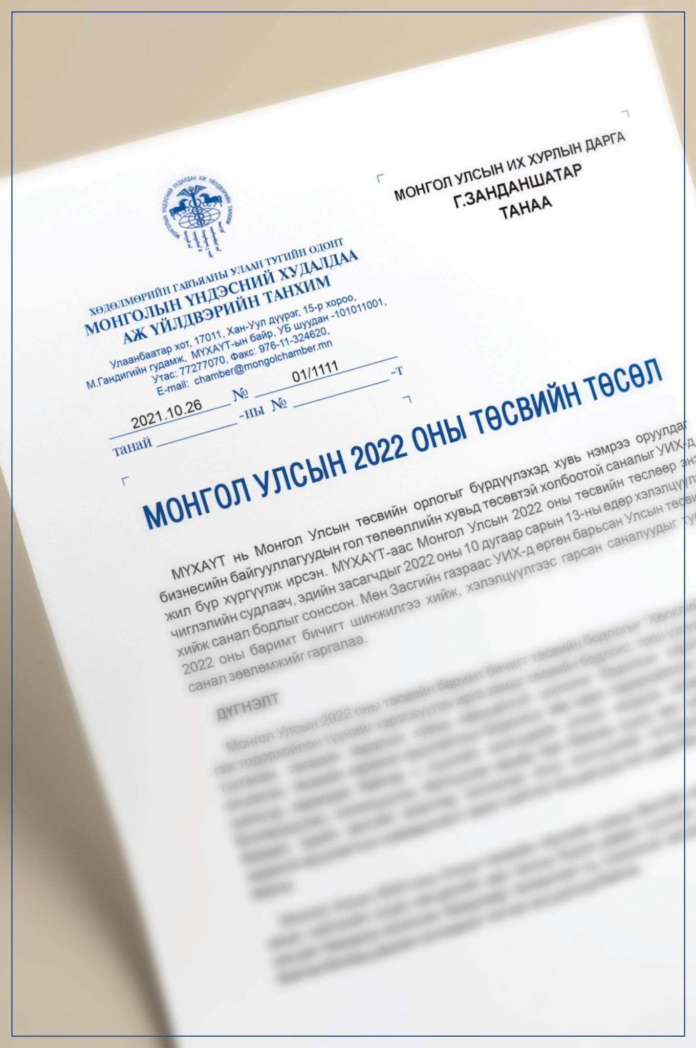 МҮХАҮТ-аас Монгол Улсын 2022 оны Улсын нэгдсэн төсвийн төсөлд санал хүргүүллээ