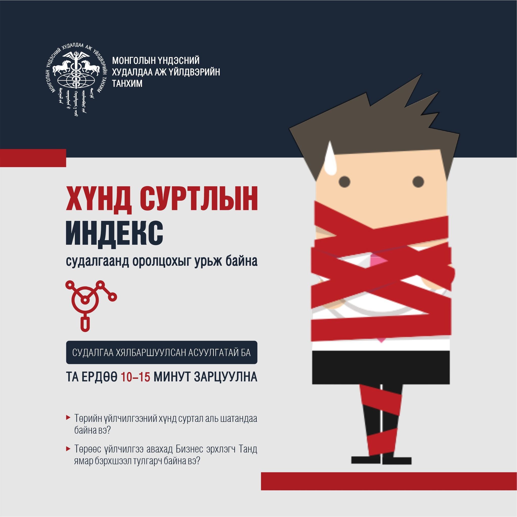 МҮХАҮТ-аас Хүнд суртлын индекс судалгааг 2004 оноос 2 жил тутамд явуулдаг ба төрийн үйлчилгээний яг аль хэсэгт хүнд суртал байгааг тэдгээрийн үйлчилгээг голлон авдаг бизнес эрхлэгчдээр бодитойгоор үнэлүүлэн гаргах, үр дүнг холбогдох байгууллагууд болон олон нийтийн сонорт хүргэх, төрийн байгууллагын үйлчилгээний хүнд суртлыг багасгах чиглэлд хийх, авч хэрэгжүүлэх үйл ажиллагаануудыг эрчимжүүлэх зорилготой судалгаа юм.