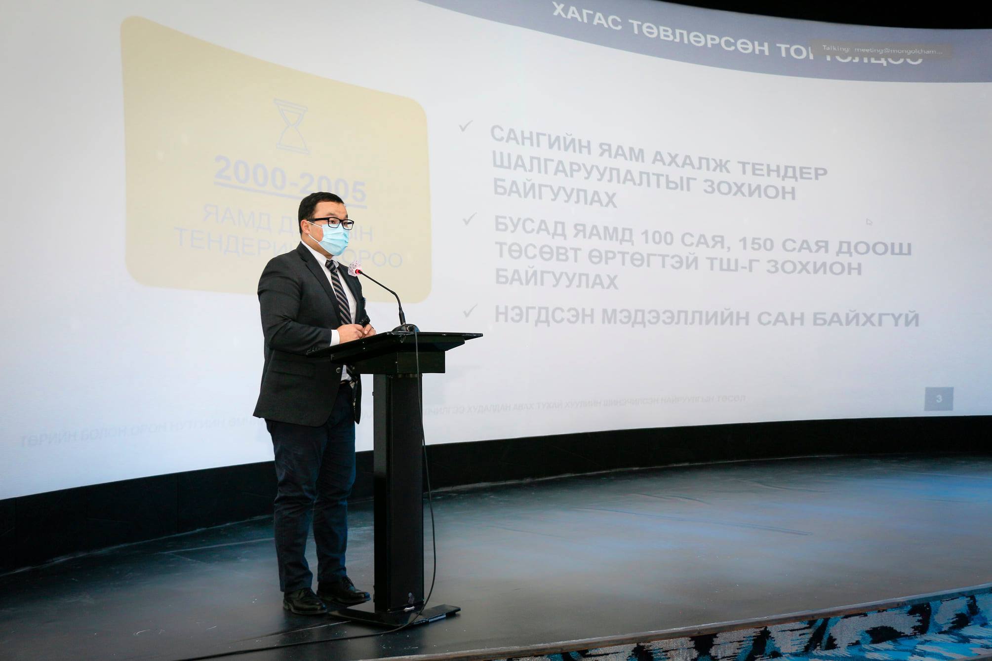 Төрийн болон орон нутгийн өмчийн хөрөнгөөр бараа, ажил, үйлчилгээ худалдан авах тухай хууль 2005 онд батлагдаж, нийт 21 удаа өөрчлөлт орсон, харин энэ удаагийн шинэчилсэн найруулгын төсөлд ямар өөрчлөлтүүдийг тусгасан талаар Сангийн яамны Хууль, эрх зүйн газрын Худалдан авах ажиллагааны бодлогын хэлтсийн дарга Ц.Батзул танилцуулав. Шинэчилсэн найруулгын төсөлд тендерийг шалгаруулахдаа технологийн дэвшилд тулгуурлан хүний оролцоог бууруулах, худалдан авах ажиллагааг төлөвлөх шатнаас эхлэн гэрээ байгуулах, гэрээний гүйцэтгэлийг хянах хүртэл шатыг цахим системээр зохион байгуулах, ил тод, нээлттэй байдлыг нэмэгдүүлж, авлига, ашиг сонирхлын зөрчлөөс ангид байх, дотоодын үйлдвэрлэл, аж ахуй эрхлэгчдийг дэмжих, худалдан авах ажиллагаанд оролцогч болон шийдвэр гаргах этгээдийн хариуцлагыг дээшлүүлэх чиглэлээр холбогдох өөрчлөлтийг тусгажээ.