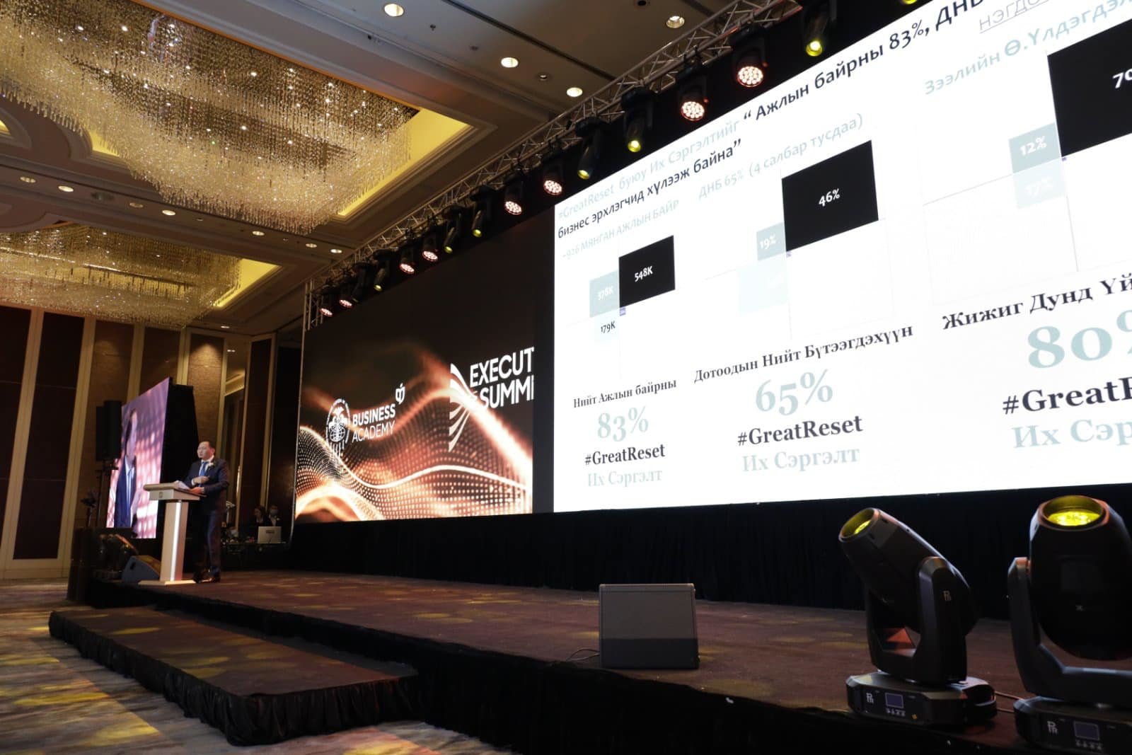 МҮХАҮТ-ын дэргэдэх Бизнес Академи-аас Монгол Улсын ТОП 10 аж ахуйн нэгжээс гаргасан Эдийн засгийн их сэргэлтийн төлөөх хамтарсан тунхаг бичгийг бодит ажил болгох, богино хугацаанд эдийн засгаа сэргээх, эдийн засгийн чиг хандлага, бизнес загвараа эргэн харж, хамтын ажиллагааг шинэ түвшинд гаргах "EXECUTIVE SUMMIT 2021" Гүйцэтгэх дээд удирдлагуудын уулзалтыг зохион байгуулж байна.