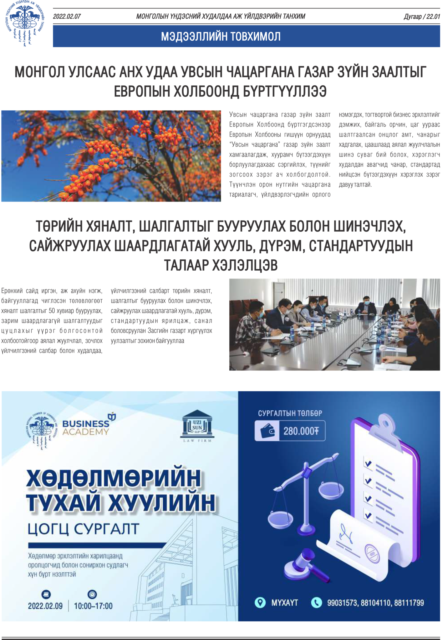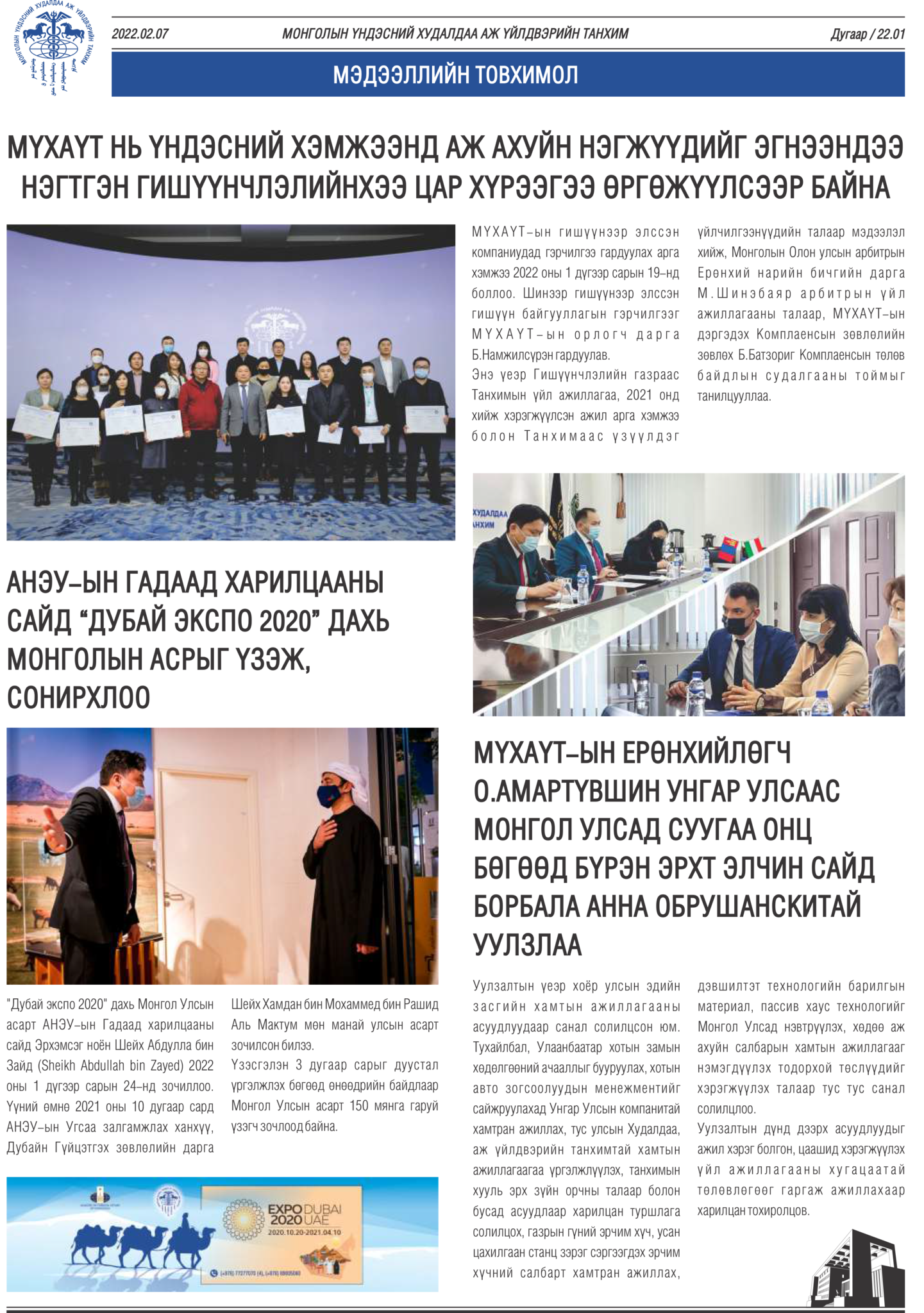 “МОНГОЛ–ЧЕХИЙН БИЗНЕС УУЛЗАЛТ, АЯЛАЛ” АРГА ХЭМЖЭЭНД УРЬЖ БАЙНА