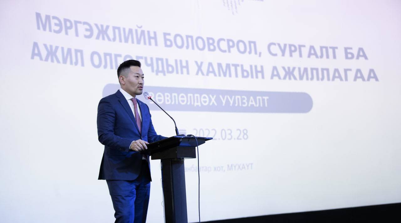 Боловсрол, шинжлэх ухааны яам, МҮХАҮТ хамтран "Мэргэжлийн боловсрол ба ажил олгогчдын хамтын ажиллагаа" зөвлөлдөх уулзалтыг зохион байгууллаа. Уулзалтад танхимаар 70 гаруй, цахимаар 100 гаруй оролцогч оролцож, санал солилцов.