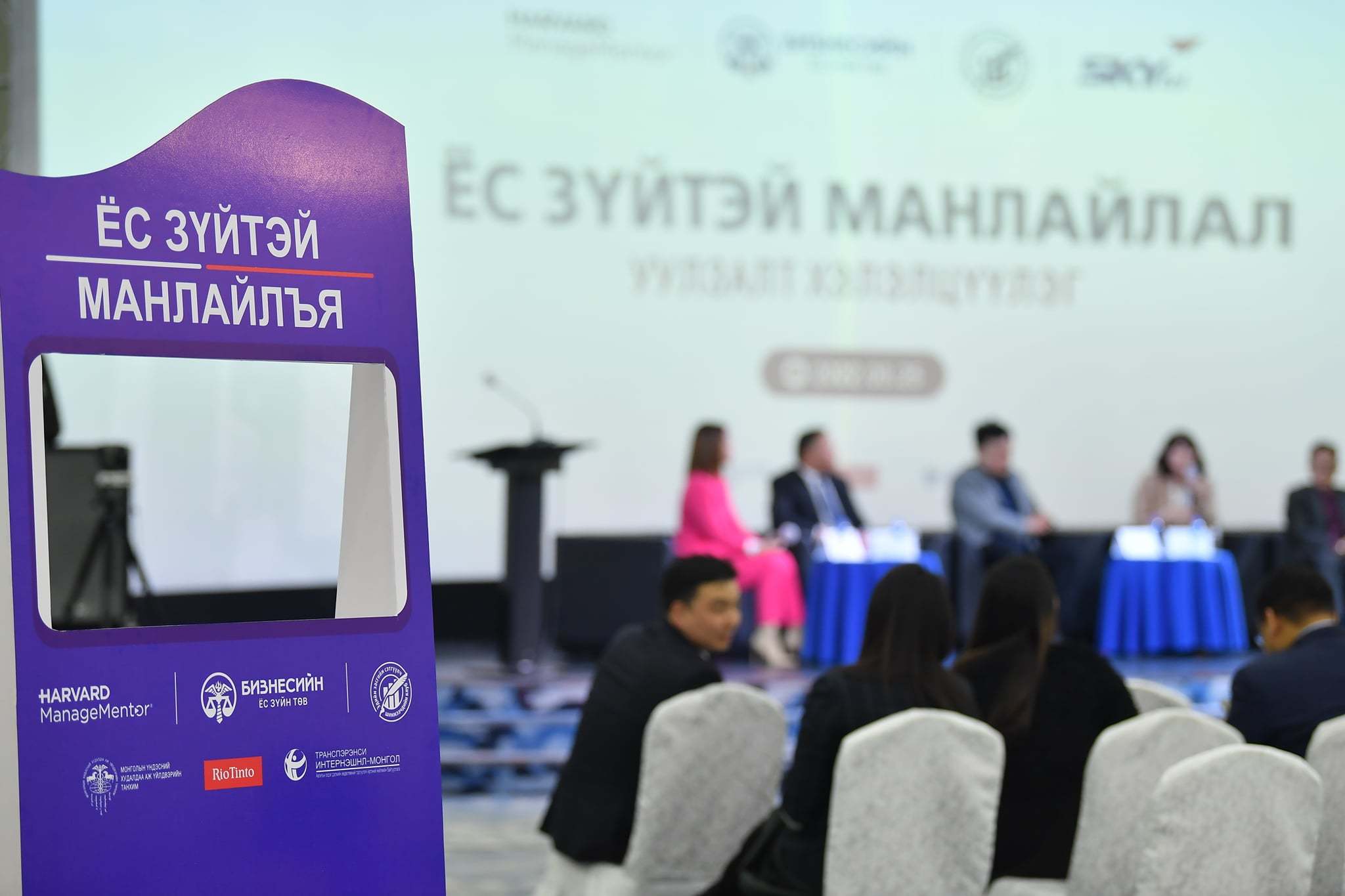 Нэгдүгээр хэсэг - Өнөөгийн нөхцөл байдал, асуудал: МҮХАҮТ-ын ТХГ-ын дарга С.Оюунзул “Бизнесийн ёс зүйн төвийн үйл ажиллагаа”, Скайтел группын Хууль эрх зүйн албаны дарга Ө.Жамбалсүрэн “Яагаад бизнест ЁС ЗҮЙ чухал вэ?”