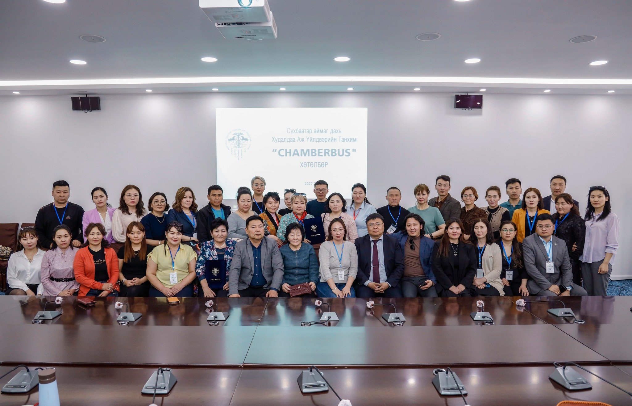 МҮХАҮТ-ын "ChamberBus" бизнес аялалд Сүхбаатар аймгийн бизнес эрхлэгчдийн төлөөлөл 45 хүн оролцож, 4 дүгээр сарын 5-7-ны өдрүүдэд Улаанбаатар хотод туршлага судалж байна.