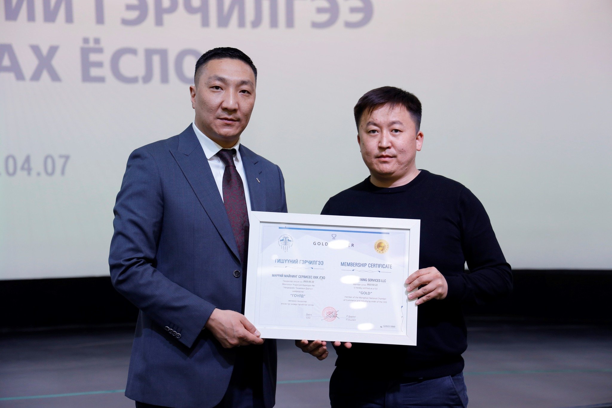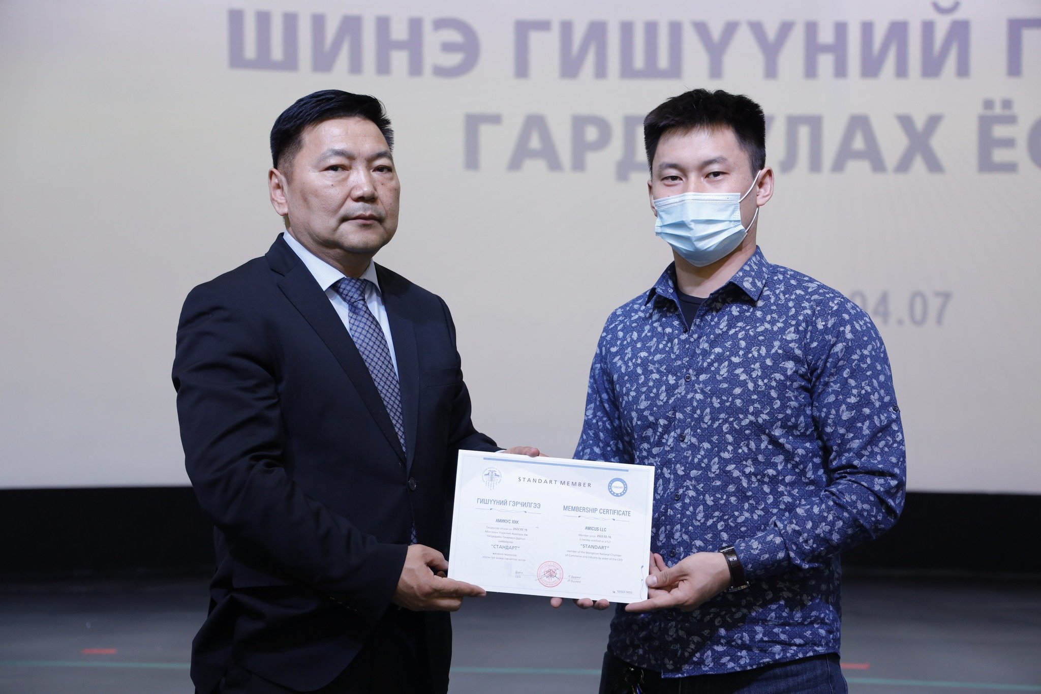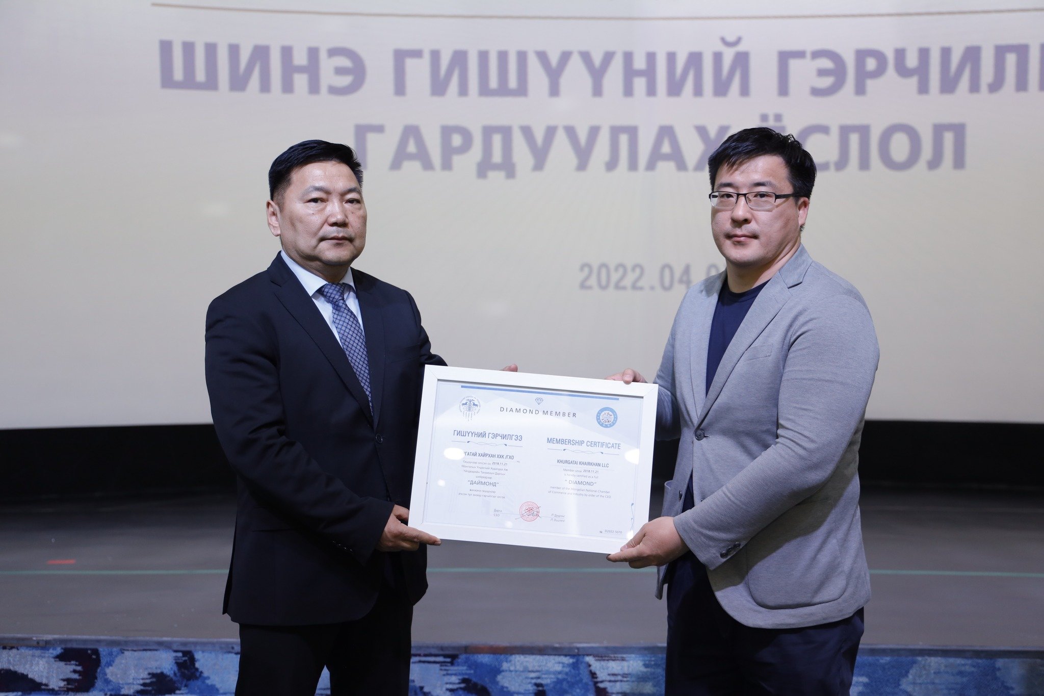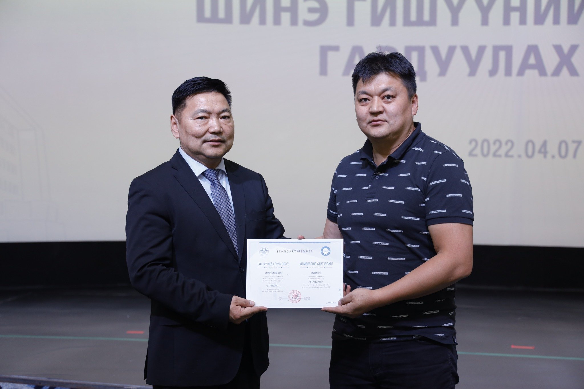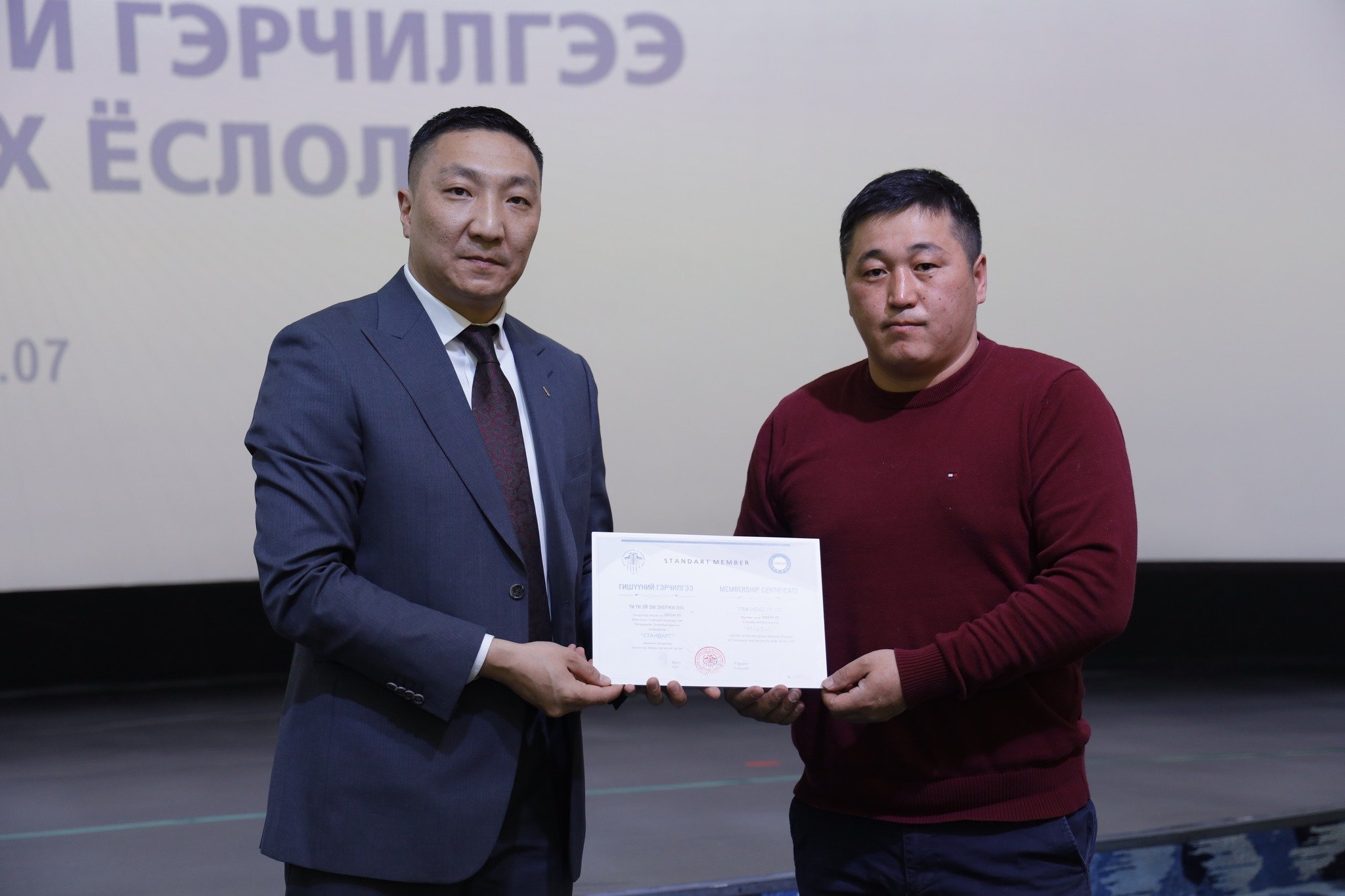 МҮХАҮТ-д шинээр элссэн 50 гаруй компанид МҮХАҮТ-ын Орлогч дарга Б.Намжилсүрэн, Гишүүнчлэлийн газрын дарга Ц.Магнайбаатар нар Гишүүний гэрчилгээг гардууллаа.