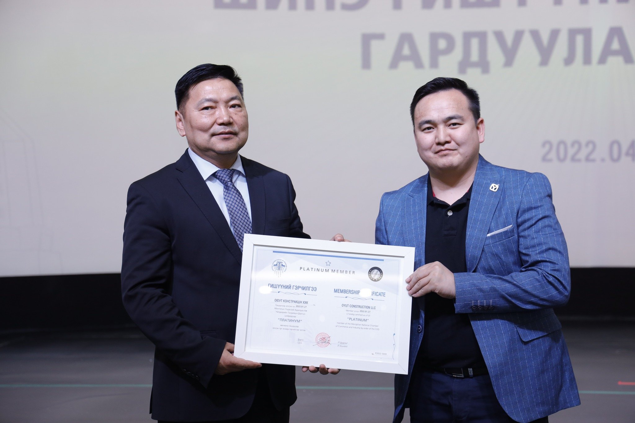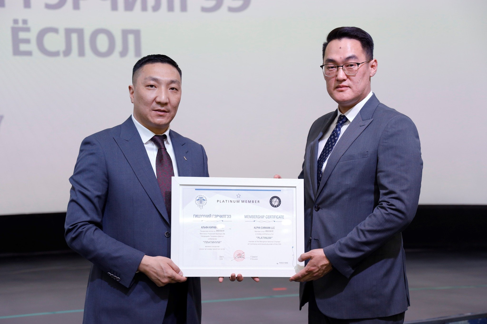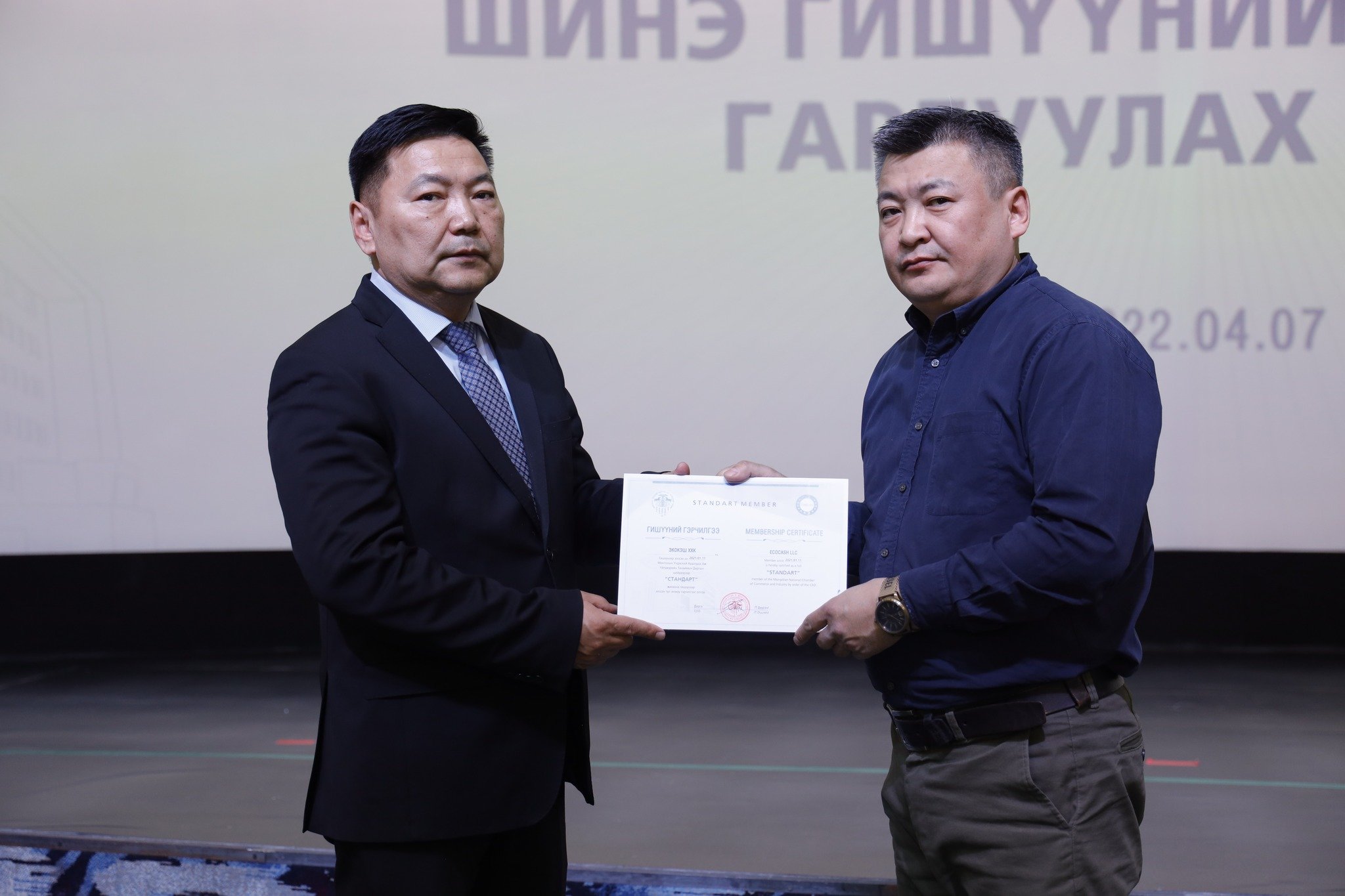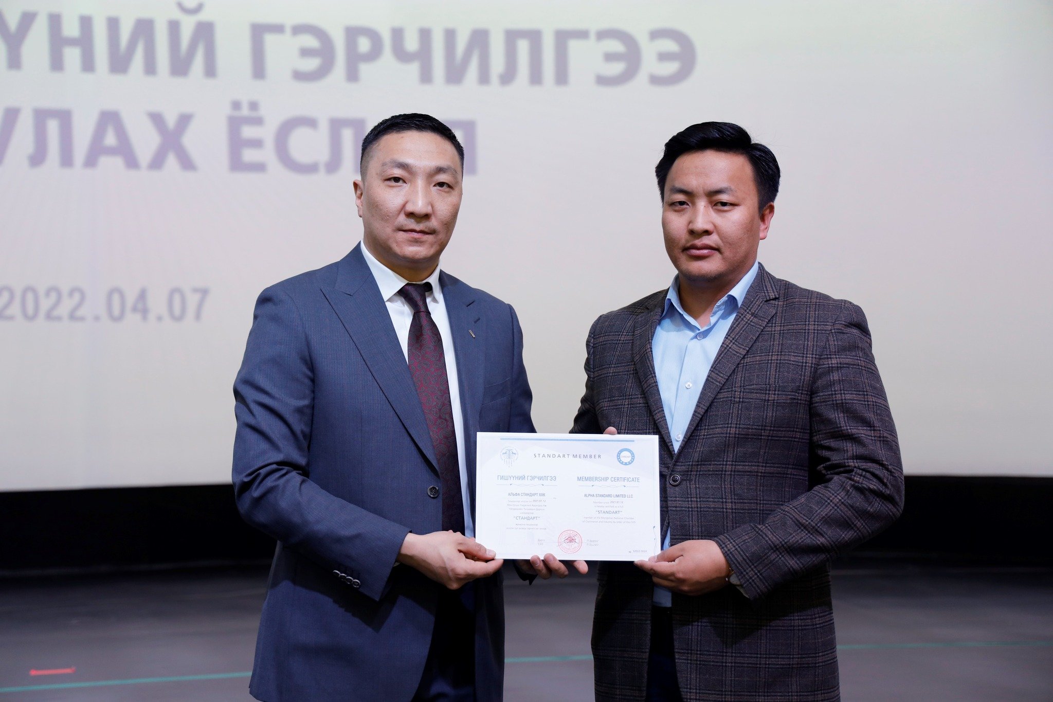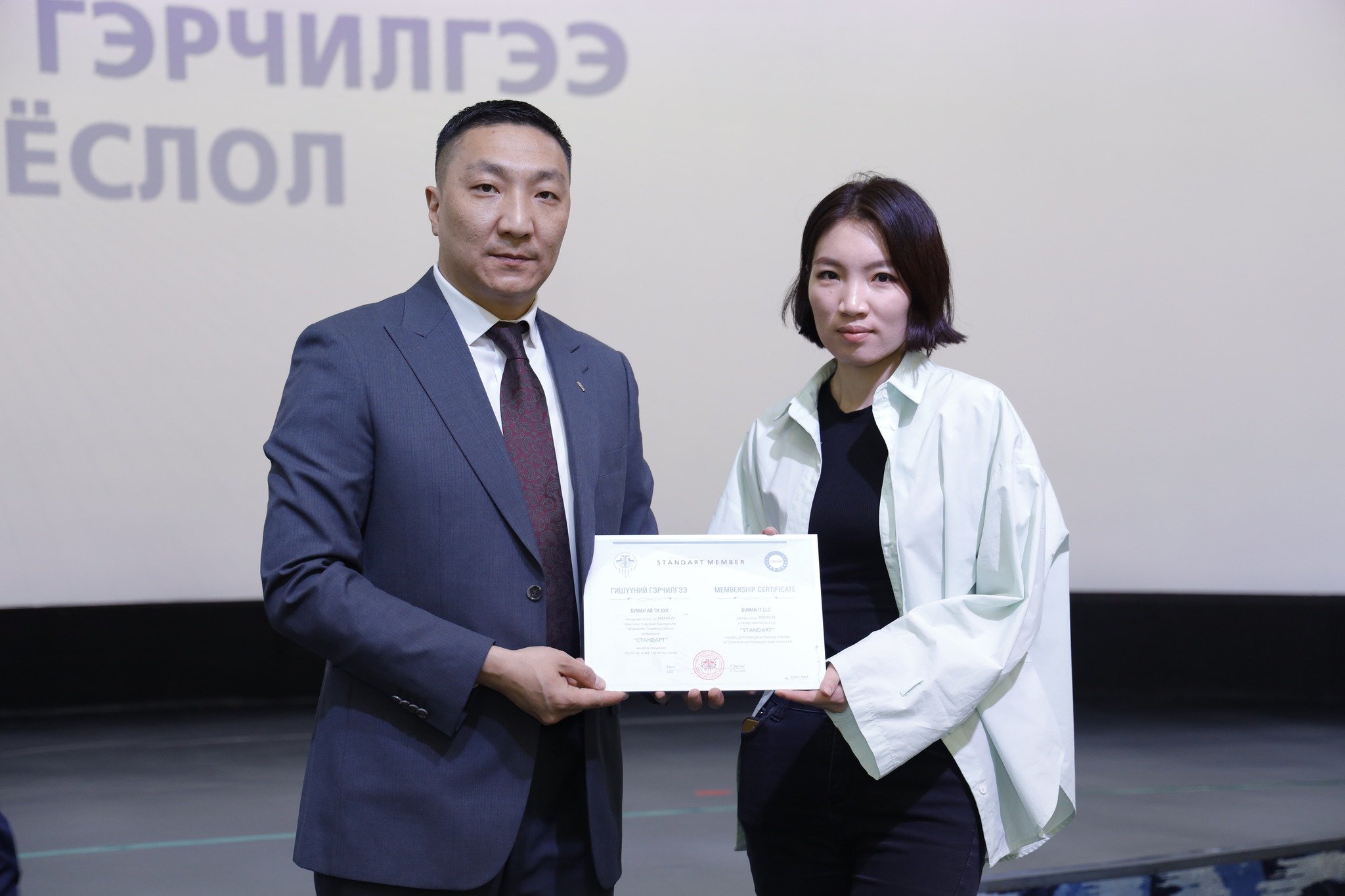 МҮХАҮТ-д шинээр элссэн 50 гаруй компанид МҮХАҮТ-ын Орлогч дарга Б.Намжилсүрэн, Гишүүнчлэлийн газрын дарга Ц.Магнайбаатар нар Гишүүний гэрчилгээг гардууллаа.