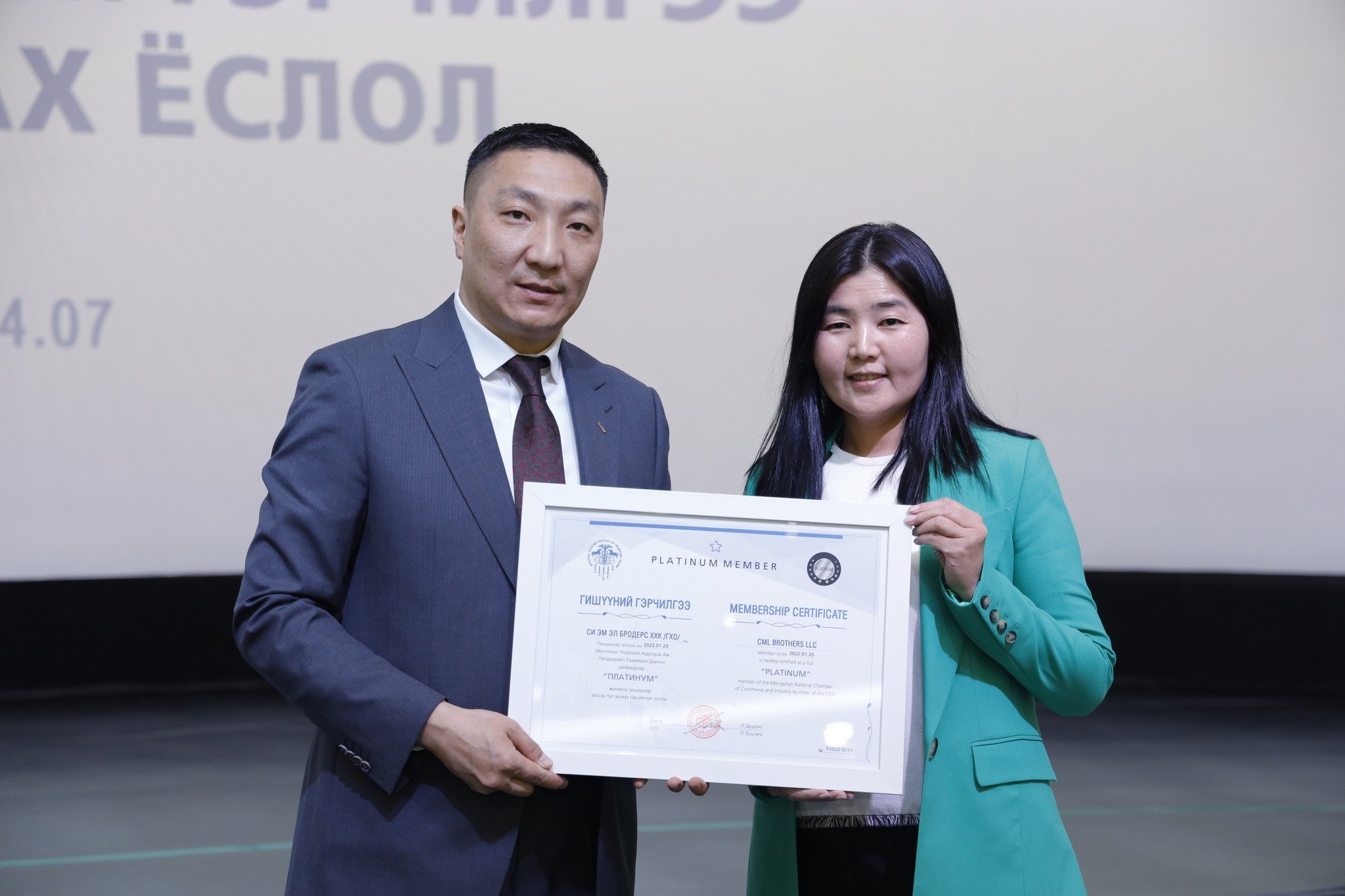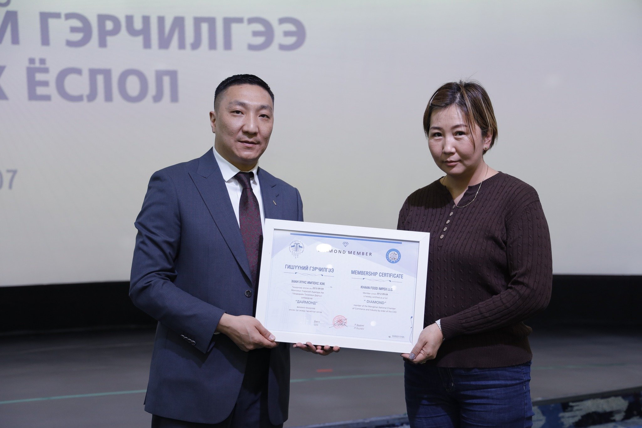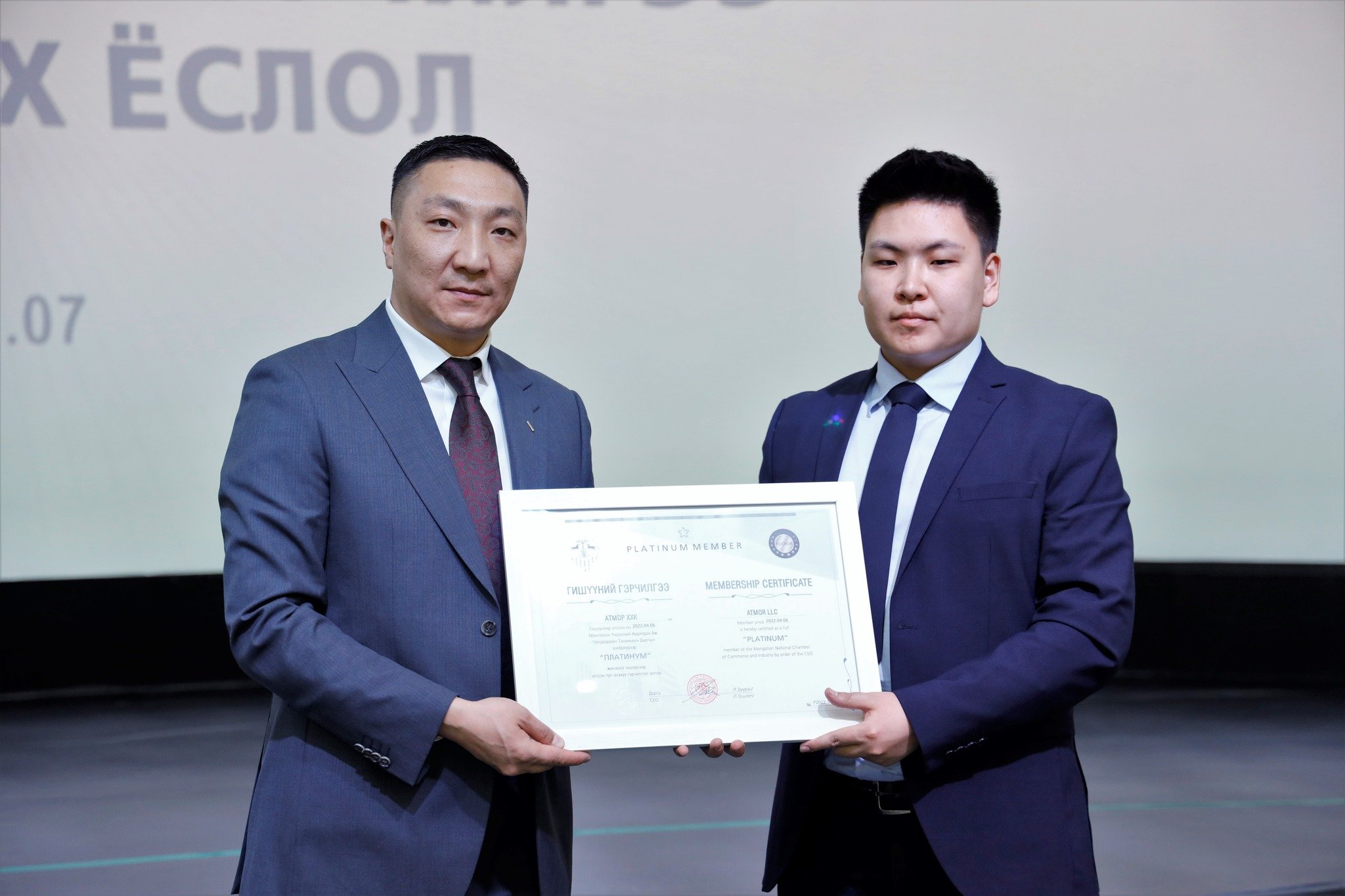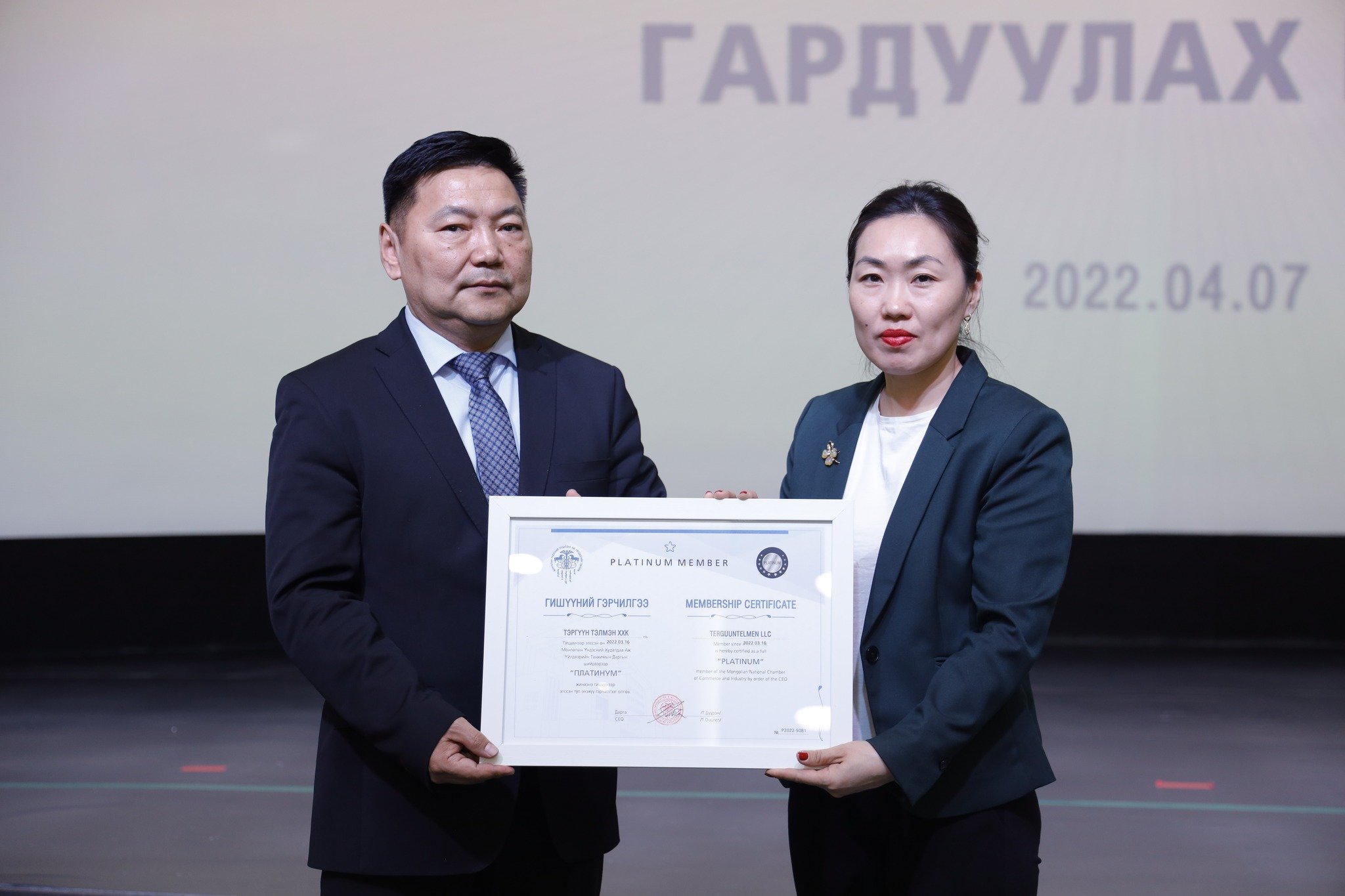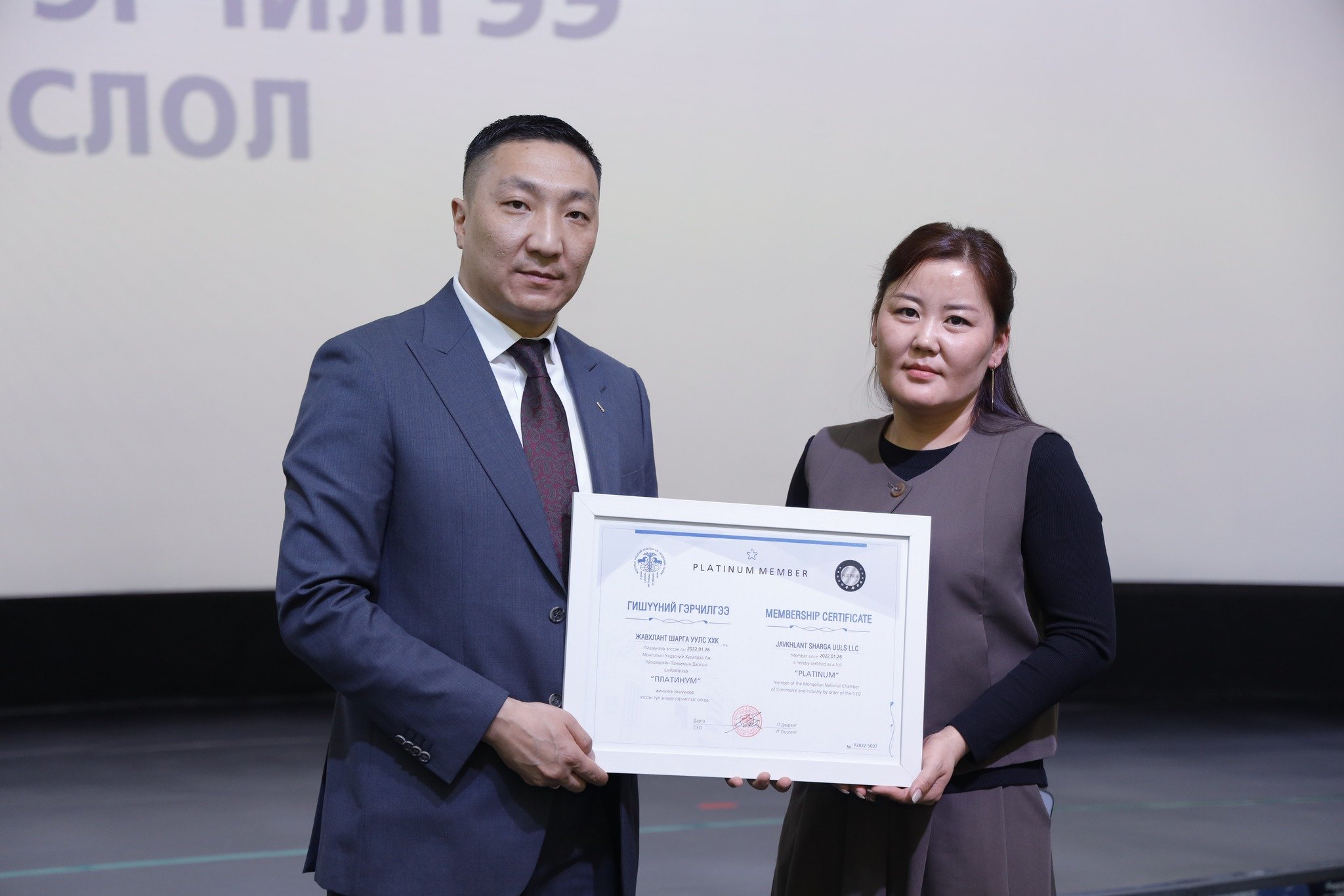 МҮХАҮТ-д шинээр элссэн 50 гаруй компанид МҮХАҮТ-ын Орлогч дарга Б.Намжилсүрэн, Гишүүнчлэлийн газрын дарга Ц.Магнайбаатар нар Гишүүний гэрчилгээг гардууллаа.