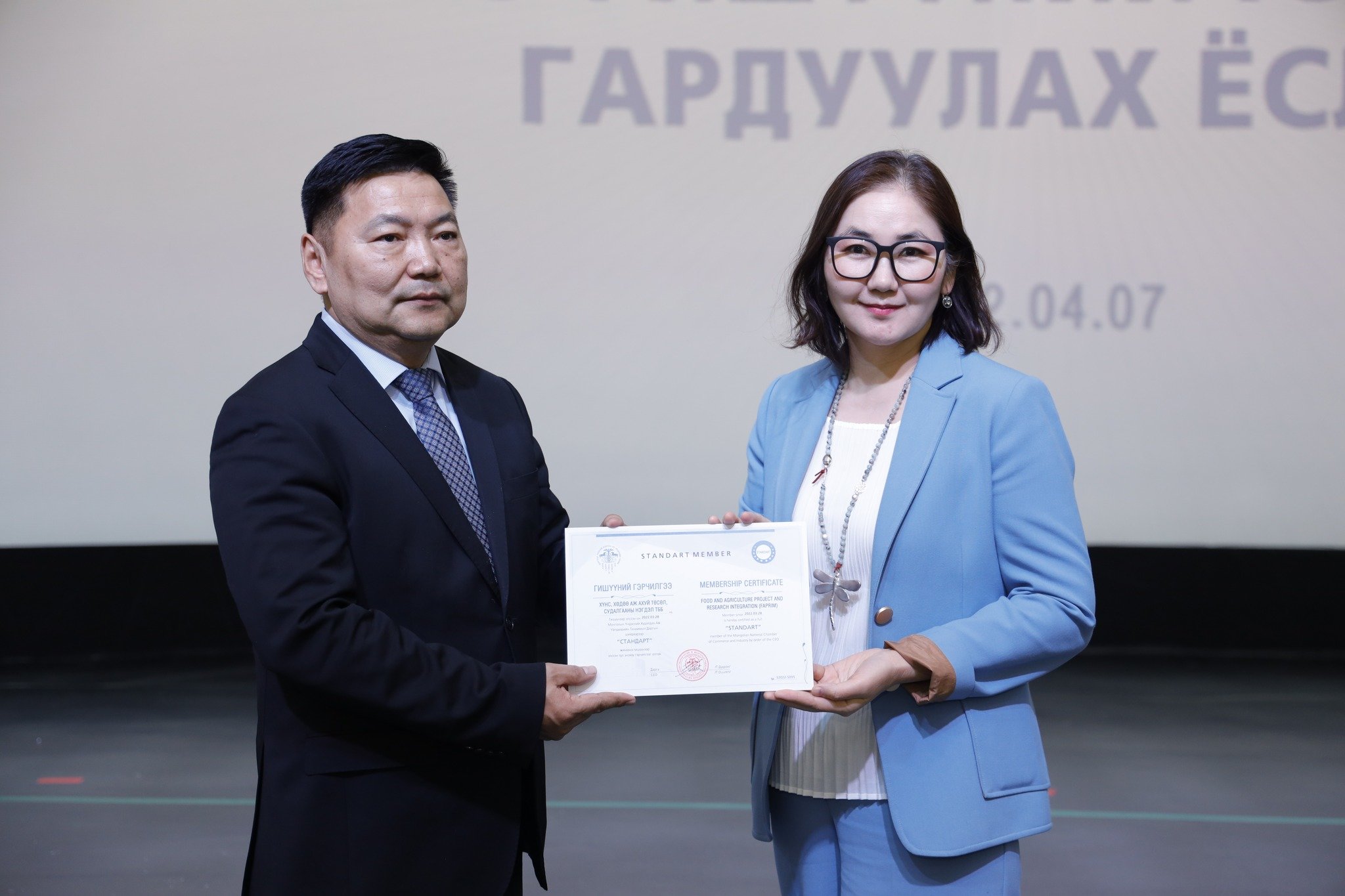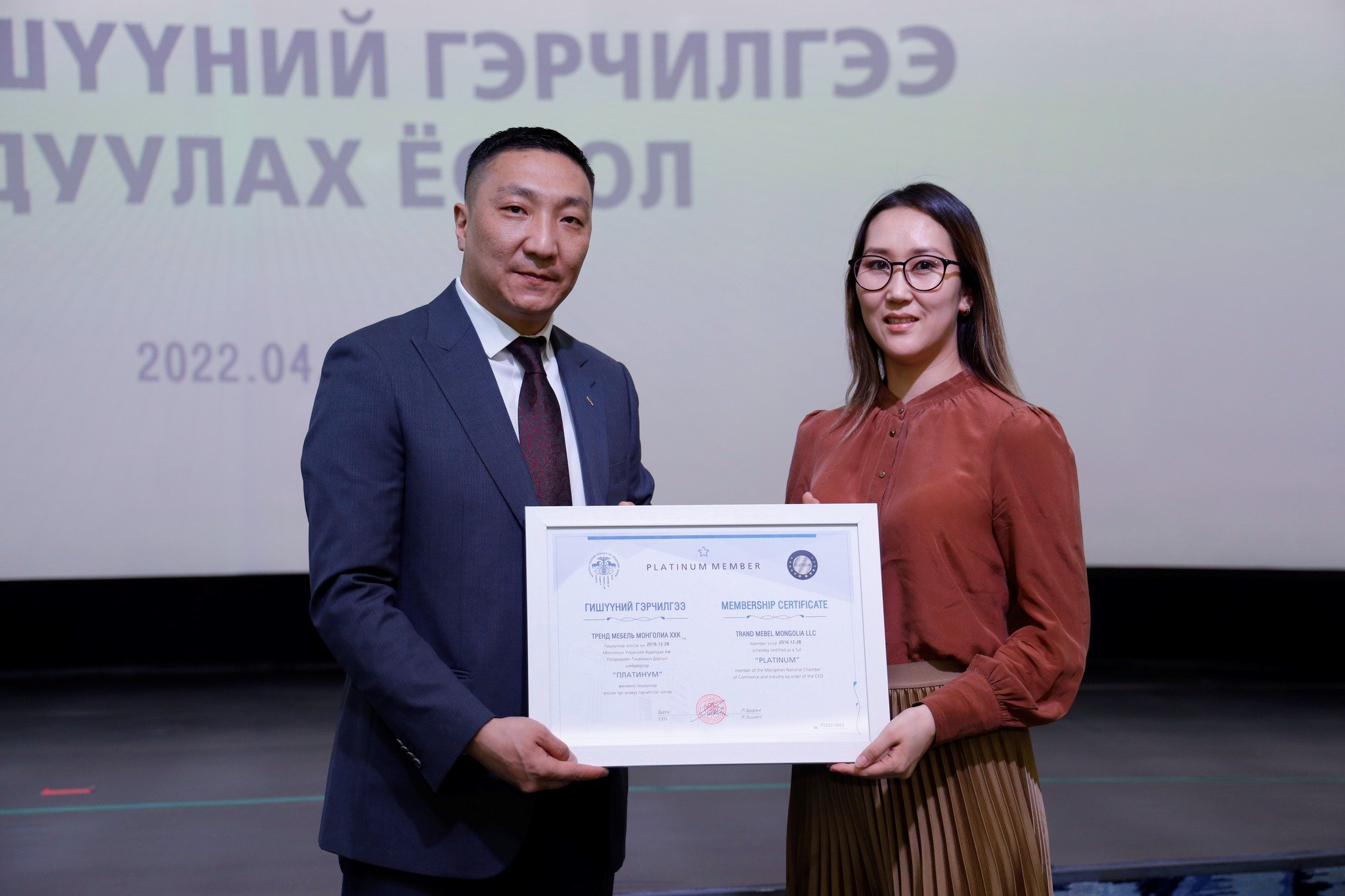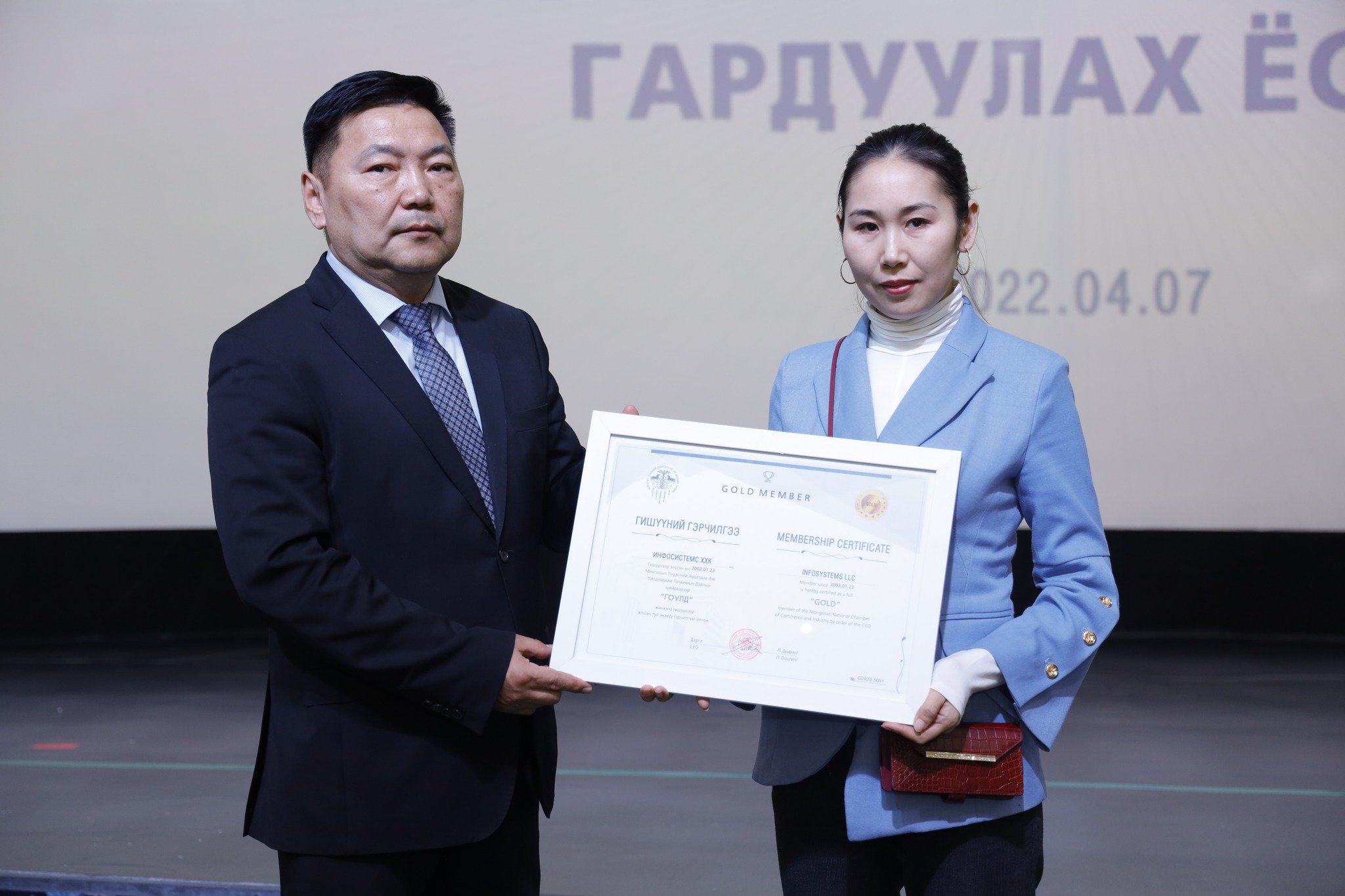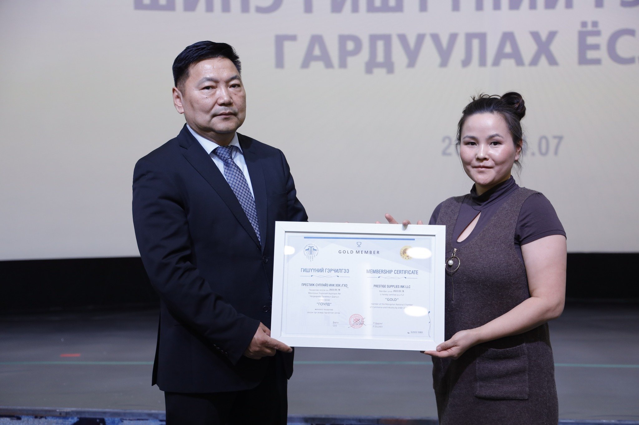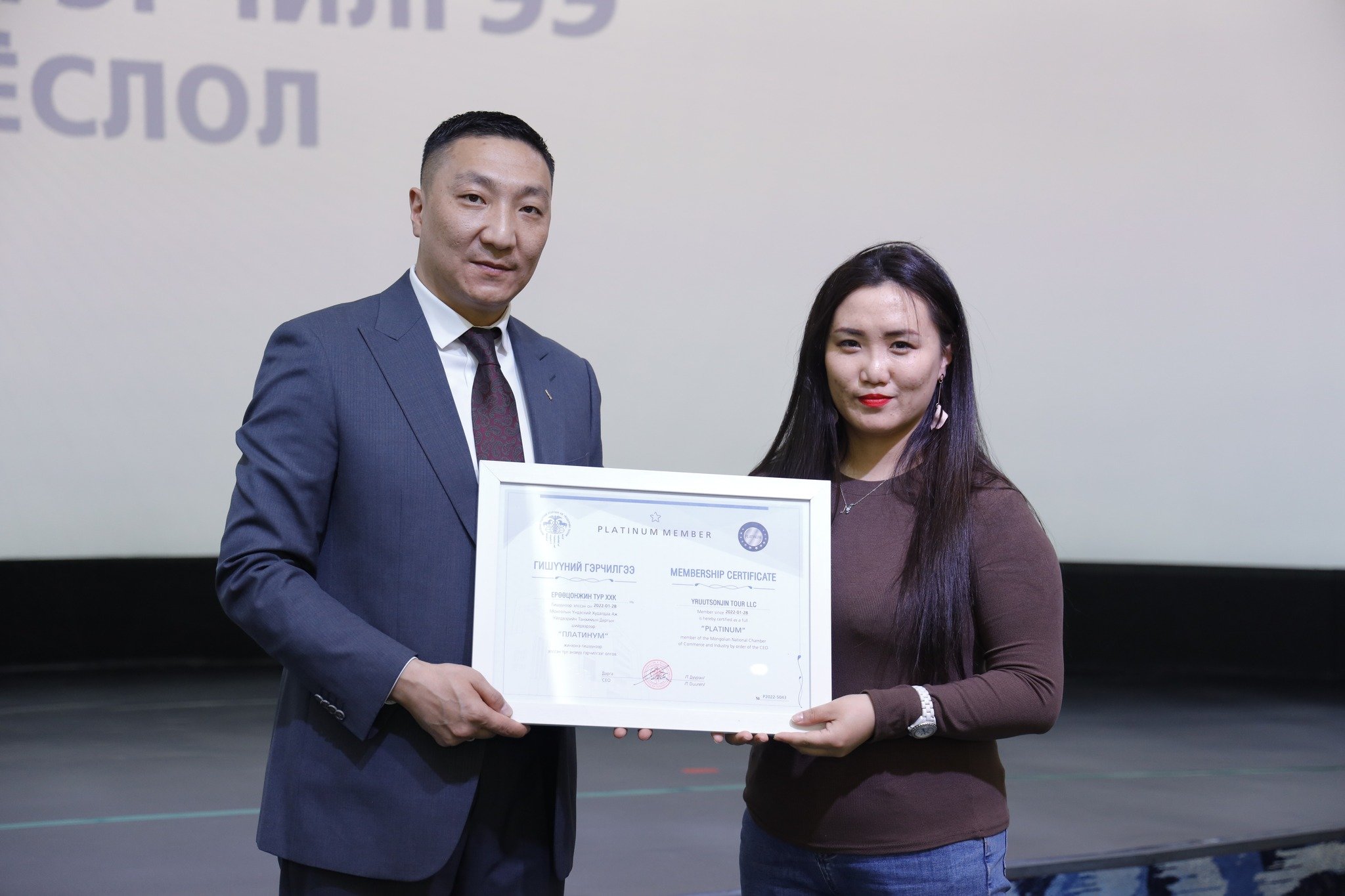 МҮХАҮТ-д шинээр элссэн 50 гаруй компанид МҮХАҮТ-ын Орлогч дарга Б.Намжилсүрэн, Гишүүнчлэлийн газрын дарга Ц.Магнайбаатар нар Гишүүний гэрчилгээг гардууллаа.