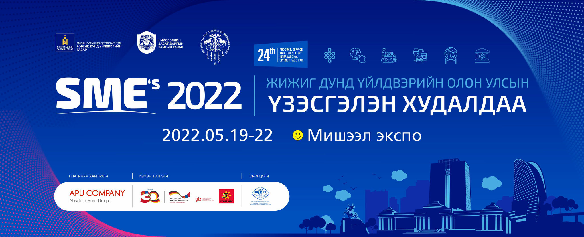 Монголын Үндэсний Худалдаа Аж Үйлдвэрийн Танхим, Жижиг, дунд үйлдвэрийн газар, Нийслэлийн Засаг даргын тамгын газар хамтран жил бүр уламжлал болгон зохион байгуулдаг “Жижиг Дунд Үйлдвэрийн Бүтээгдэхүүн, Үйлчилгээ, Технологи-2022” Олон улсын үзэсгэлэн худалдааг 24 дэх жилдээ 2022 оны 5 дугаар сарын 19-22-ны өдрүүдэд Мишээл экспо төвд зохион байгуулах гэж байна.