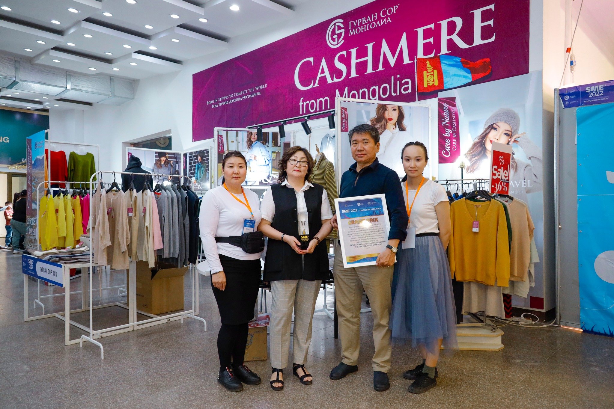 Компанийн нийгмийн хариуцлагыг гүнээ ухамсарлан, ажлын байр нэмэгдүүлж, шилдэг санаа, шинэ технологи нэвтрүүлэн олон улсын чанар, стандартад нийцсэн Монгол Улсад үйлдвэрлэсэн ноолууран бүтээгдэхүүнийг дотоодын болон гадаадын зах зээлд нийлүүлж байгааг өндрөөр үнэлэн “ГУРВАН СОР” ХХК-д тус үзэсгэлэнгийн ДЭЭД ШАГНАЛ “ГРАН-ПРИ” ЦОМ, ХҮНДЭТ ӨРГӨМЖЛӨЛ олгов.