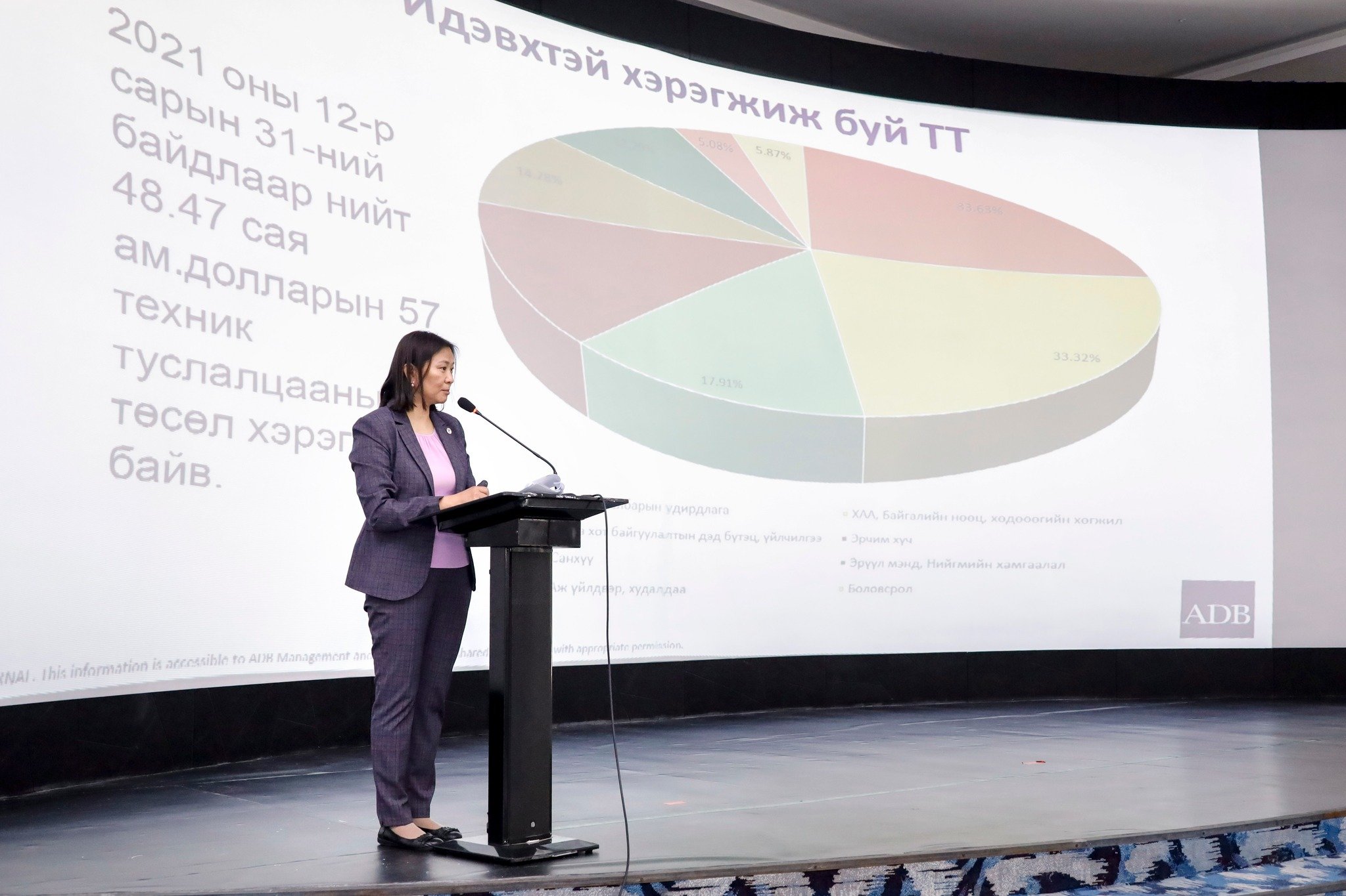 Сургалт, уулзалтын үеэр Дэлхийн банк, Азийн хөгжлийн банкнаас хэрэгжүүлж буй төслүүдийн мэдээлэл, худалдан авах ажиллагааны талаар шаардлагатай чадавх, худалдан авах ажиллагаанд хэрхэн оролцох, ямар дүрэм журмаар явагдах, ажил гүйцэтгэх явцад байгаль орчин, нийгмийн ямар дүрэм журмуудыг баримтлахтай холбоотой илтгэлүүдийг танилцуулж, нээлттэй хэлэлцүүлэг өрнүүллээ.