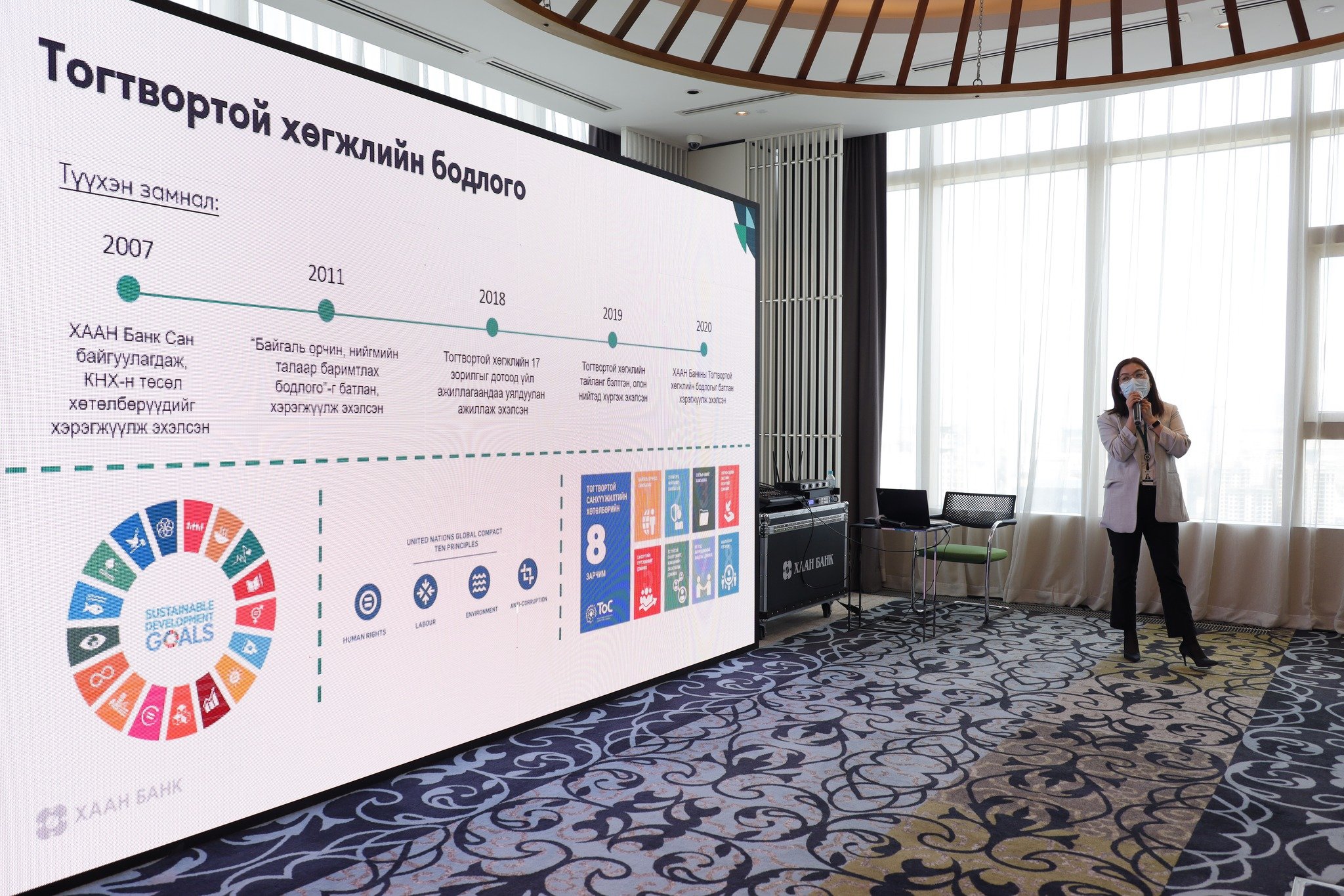 ХААН БАНК цамхаг, банкны үйл ажиллагаатай танилцах аялалд 50 гаруй бизнес эрхлэгч хамрагдлаа. Мөн энэ үеэр Хаан банк тогтвортой хөгжлийн бодлогоо танилцуулав. Монголын банкны системд нөлөө бүхий ХААН банк энэ оны эхээр брэндийн шинэчлэл хийж, алсын хараа, эрхэм зорилгоо шинэчилсэн төдийгүй 2021 онд нийт 227.8 тэрбум төгрөгийг татварт төлж, дэлхий нийтийг хамарсан цар тахлын үед Монгол Улсын төсвийн орлого бүрдүүлэхэд хувь нэмрээ оруулж ажилласан билээ.