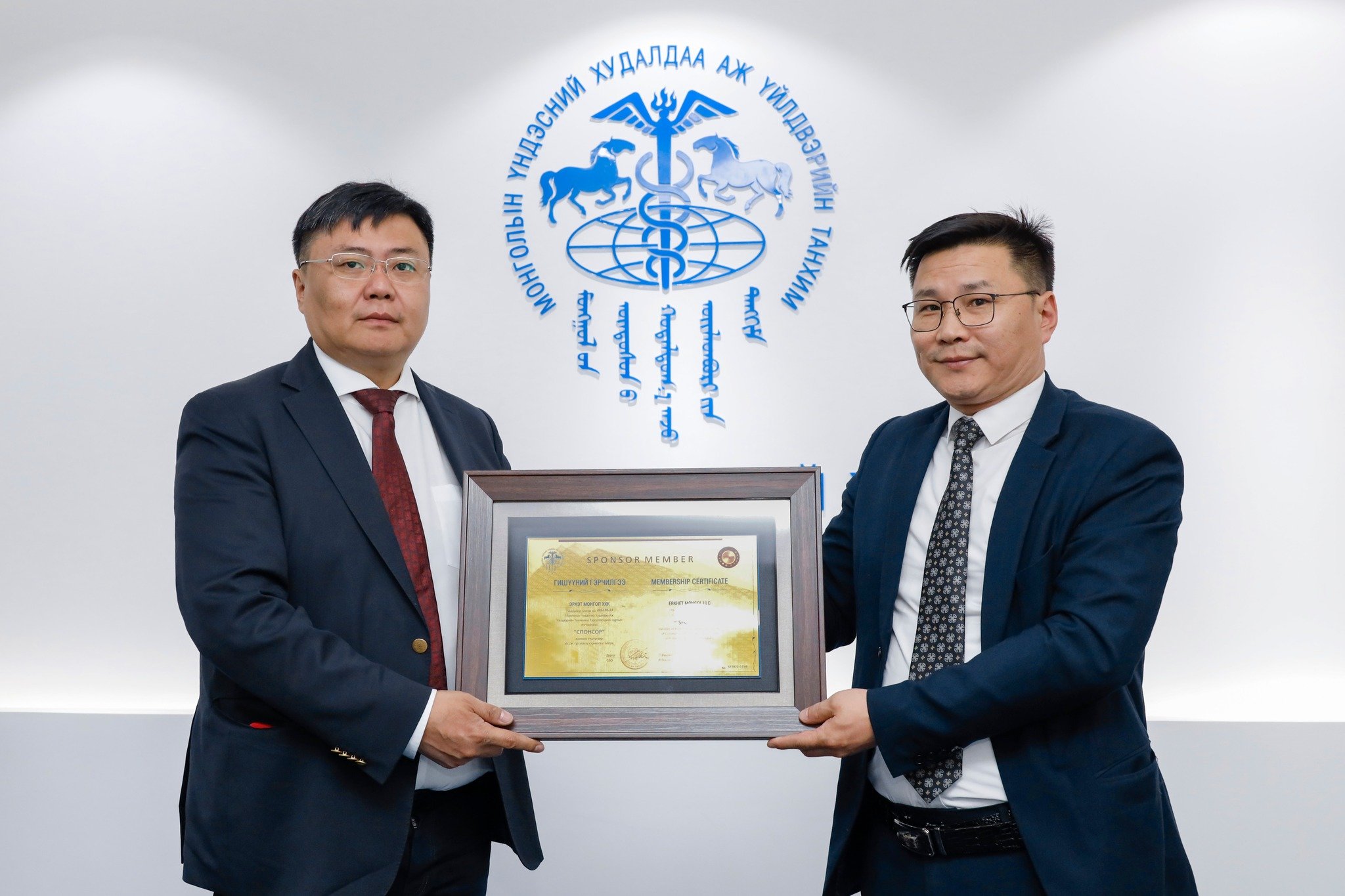 Гишүүний гэрчилгээг гардуулах үеэр МҮХАҮТ-ын үйл ажиллагаа, хийж хэрэгжүүлж байгаа ажлуудын талаар танилцуулж, цаашид хамтран ажиллах чиглэлийн талаар санал солилцов.