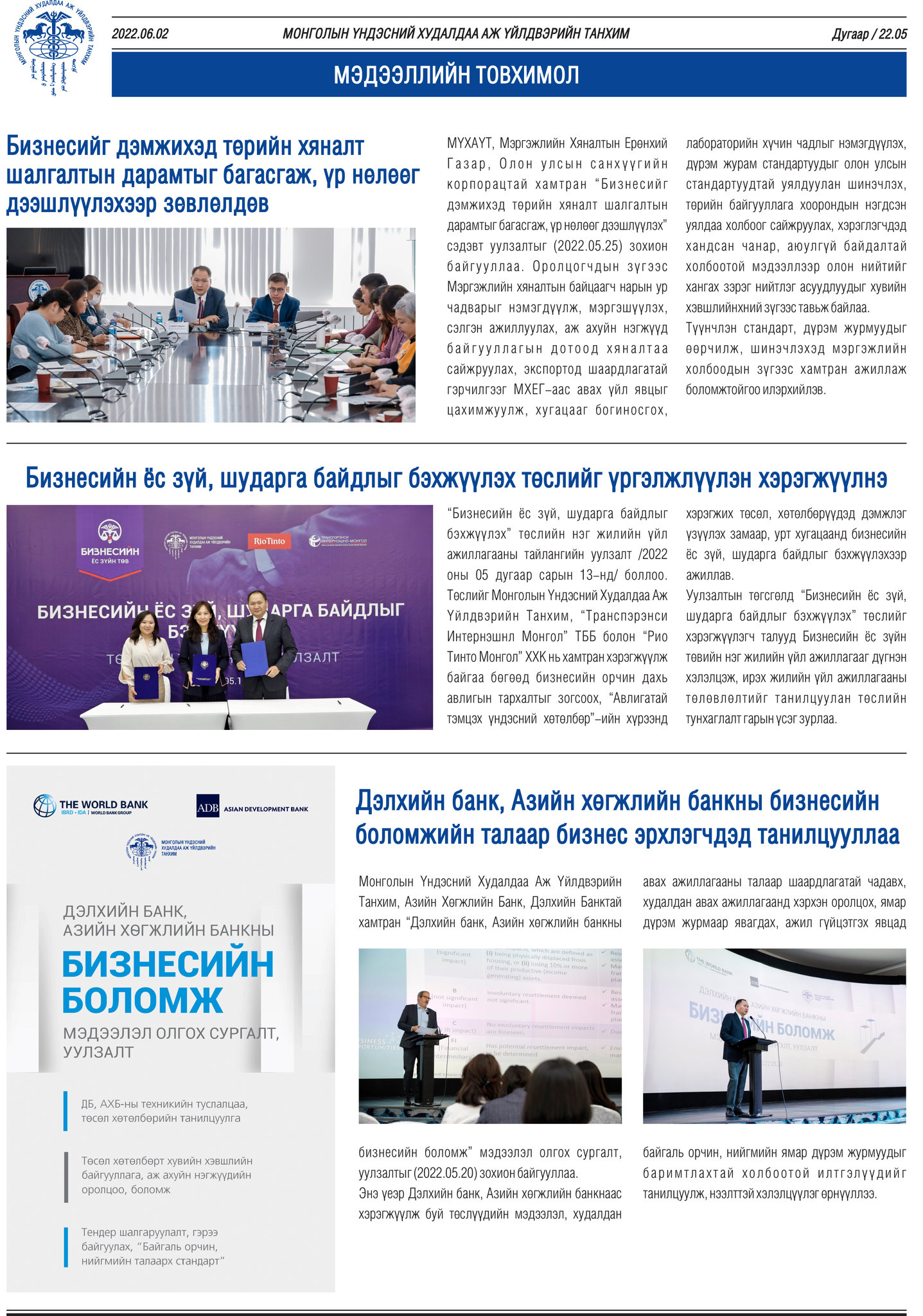 МҮХАҮТ-ын 2022 оны 5 дугаар сарын Мэдээллийн товхимолтой танилцана уу