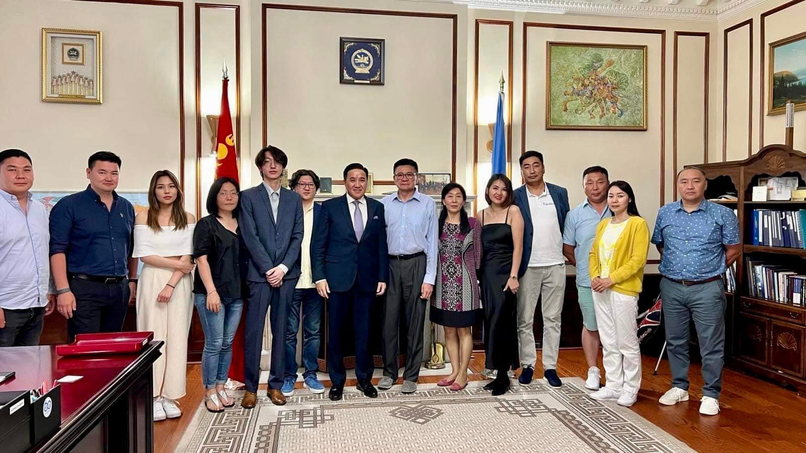Монгол Улсаас НҮБ-ын дэргэд суугаа Элчин сайд, Байнгын төлөөлөгч В.Энхболд МҮХАҮТ-ын төлөөлөгчдийг хүлээн авч уулзан, АНУ-тай бизнес эрхлэх боломжуудын талаар санал солилцож, цаашид хамтран ажиллаж бизнест нь дэмжлэг үзүүлэхээ илэрхийллээ.