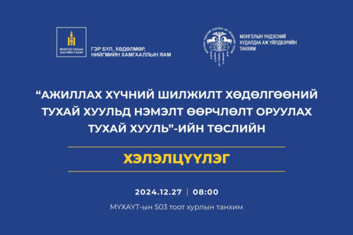 "Ажиллах хүчний шилжилт хөдөлгөөний тухай хуульд нэмэлт өөрчлөлт оруулах тухай хууль"-ийн төслийн хэлэлцүүлэгт урьж байна
