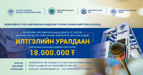 "Бизнесийн үйл ажиллагаанд шударга, ёс зүйтэй, авлигаас ангид эрх зүйн орчныг бий болгох арга зам" сэдэвт онол, арга зүйн бага хурал болно