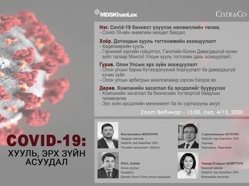 "COVID -19: Хууль, эрх зүйн асуудал" онлайн сургалтад урьж байна