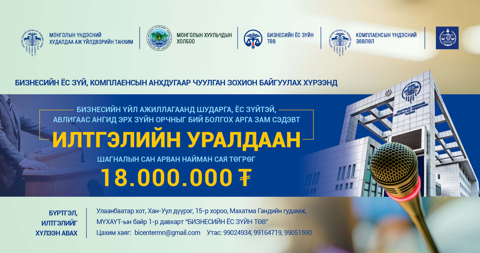"Бизнесийн үйл ажиллагаанд шударга, ёс зүйтэй, авлигаас ангид эрх зүйн орчныг бий болгох арга зам" илтгэлийн уралдаан оролцохыг урьж байна