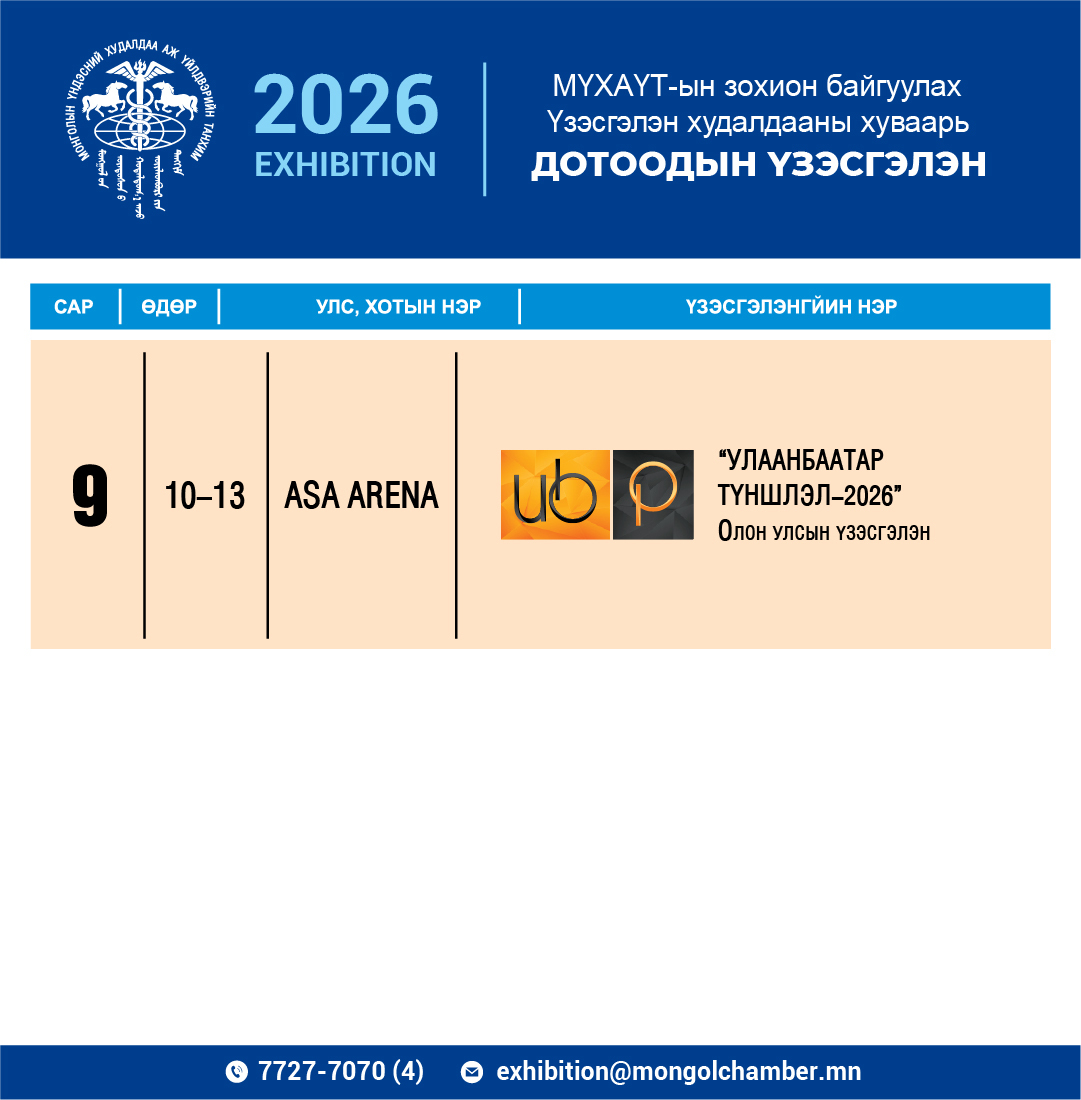 Үзэсгэлэн, Яармагийн Газар Утас: (976) 77277070 /4/ Цахим шуудан: exhibition@mongolchamber.mn